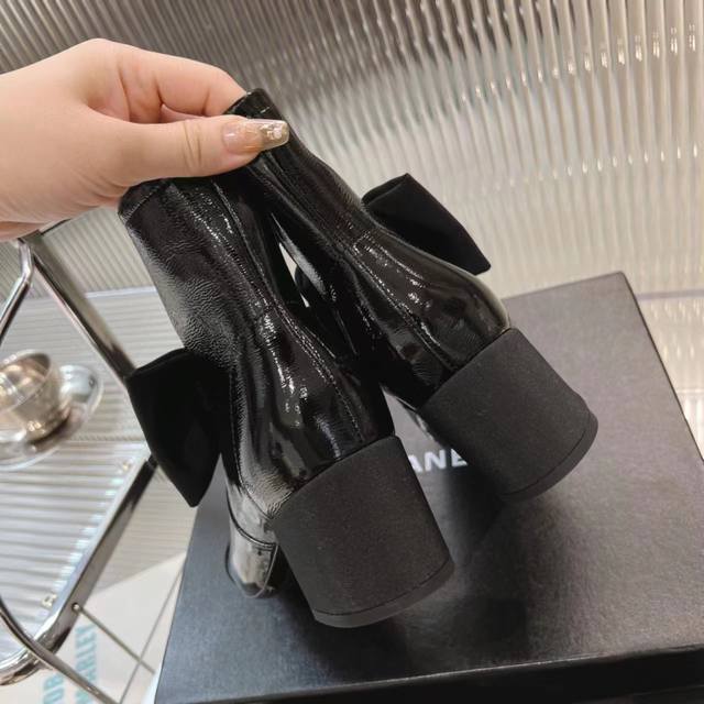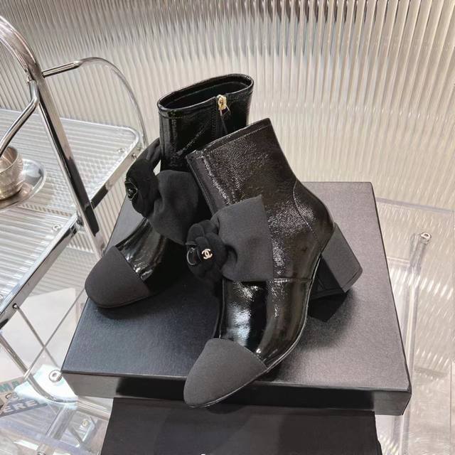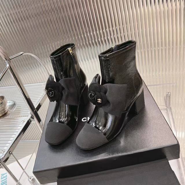 Certified Chanel 2025 Fall/Winter 25K Hot Selling Camellia Bow Boots. This season's camellia series is absolutely gorgeous! Chanel's signature elegant and sophisticated style is incredibly high-end! They look fantastic on! They're incredibly versatile, pairing perfectly with skirts and trousers! Absolutely stunning! Super ethereal and youthful! Upper: Top-grain cowhide high-wrinkle patent leather. Insole: Mixed sheepskin. Outsole: Imported genuine leather. Heel height: 6cm. Sizes: 35-39, 34, 40, 41. Custom made.