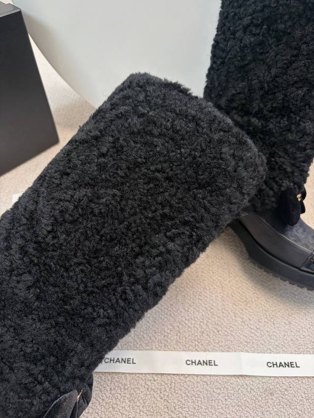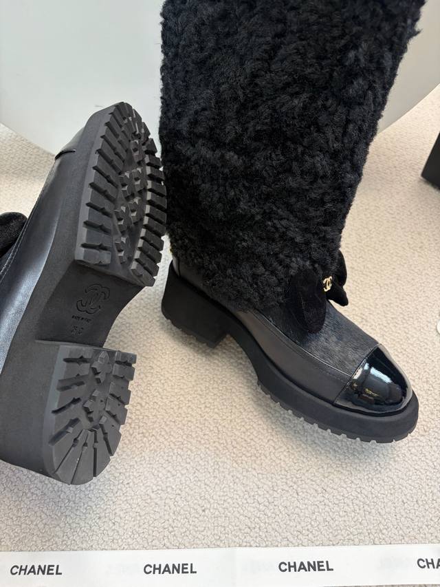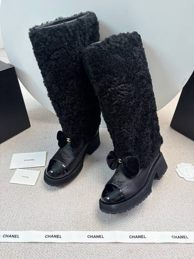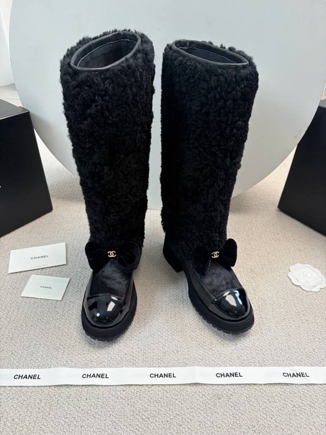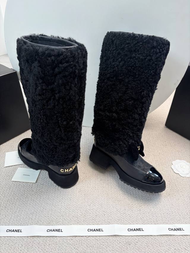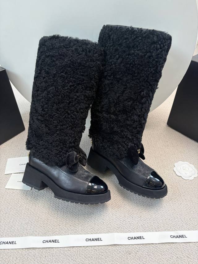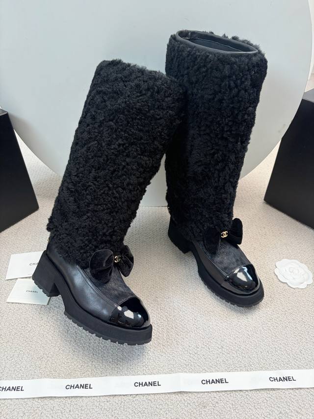 Chane* 25Ss Autumn/Winter New Ski Series Long Furry Shoes DDD Continuing Chanel's classic "patent leather toe + color blocking" combination, paired with a velvet bow featuring the double C logo, it exudes retro elegance. The shoe body is wrapped in lamb's wool, which is fluffy and soft, offering both a wintery feel and a touch of sophistication. DDD The upper is a combination of lamb's wool and patent leather, and the lining is likely to be fleece-lined for excellent warmth, suitable for the low temperatures of autumn and winter. The patent leather toe is durable and easy to care for, reducing daily wear and tear. Versatile and stylish, they pair well with coats and wool skirts for a sophisticated look, or with jeans and sweatshirts for a casual yet luxurious style, suitable for various autumn and winter outfits. DDD Material: Wool DDD Lining: Sheepskin DDD Outsole: Original molded outsole DDD Heel height: 5cm, shaft height: 35cm DDD Size range: Sizes 35-40, size 40 is custom-made and non-refundable DDD