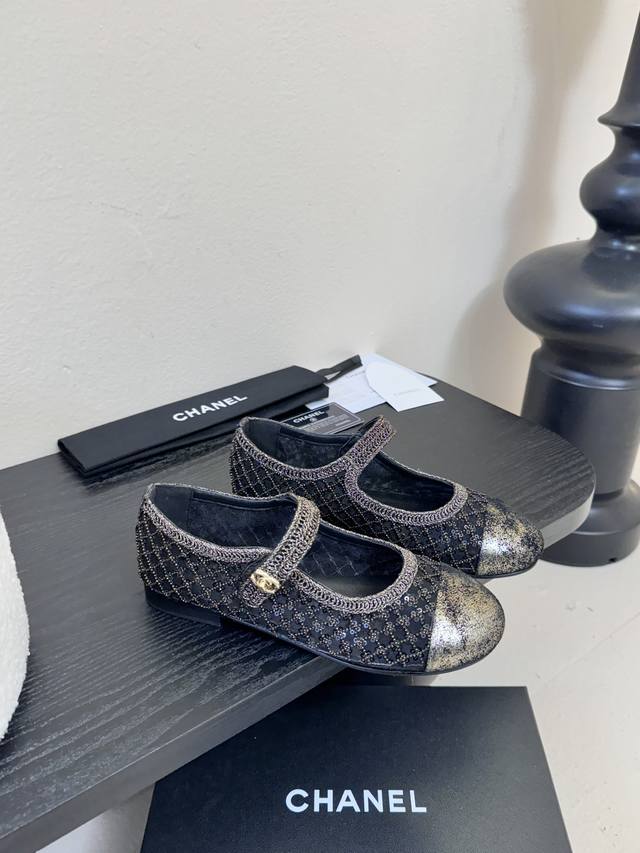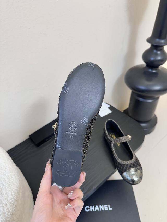 Chane* 25Ss Chanel Bow Flat Shoes DDD Featuring a round toe design, the toe area is made of glossy leather , while the main body is made of black fabric with a layered design. A large bow adorns the upper, with a metal chain detail in the center, adding a touch of sophistication and brand recognition. The overall style is retro yet fashionable. DDD Pair with a white pleated skirt and a blue knit cardigan for a sweet, preppy look, suitable for students' everyday wear or campus activities. Alternatively, pair with black straight-leg pants and a white shirt for a simple and polished look, adding a touch of sophistication to workplace attire, suitable for daily commutes. DDD Upper: Cowhide Ddd Lining: Sheepskin Ddd Outsole: Genuine Leather Ddd Size: 35~40 Size 40 (Custom sizes are non-refundable and non-exchangeable) DDD