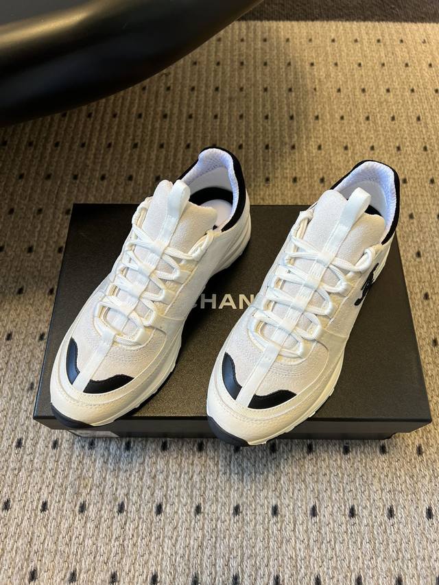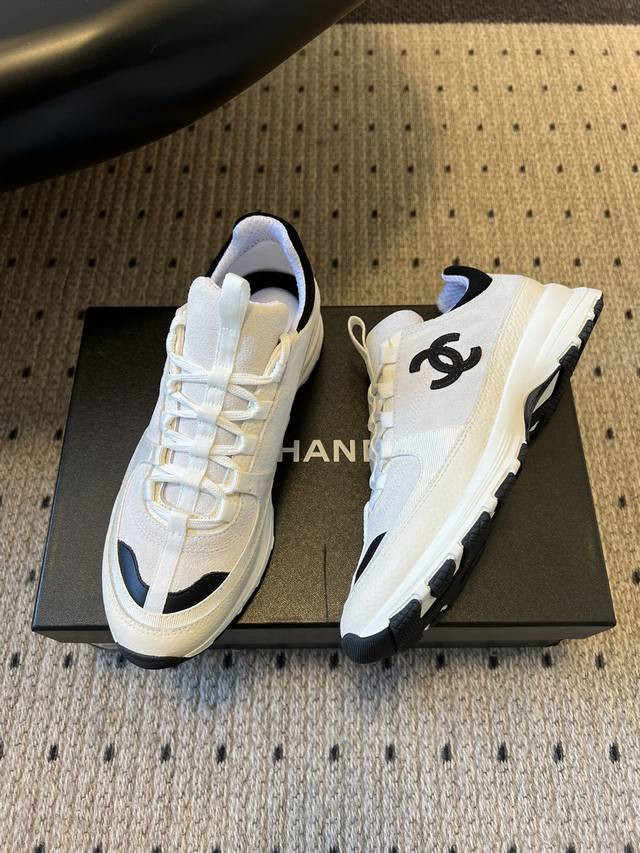 Chane* 25Ss Classic Retro Platform Sneakers/Casual Shoes DDD Blending Chanel's elegant style, the platform sole and color-blocked design exude a relaxed retro feel while reinforcing its luxurious attributes through the brand logo. The upper features a combination of leather and fabric, creating a rich textural texture; the classic double-C logo is prominently displayed, a key highlight for brand recognition. DDD The platform sole provides height while cushioning foot pressure, and the non-slip rubber outsole ensures both comfort and practicality for everyday wear. The black and white color scheme is versatile and suits all styles; paired with jeans for a relaxed casual look, or with a dress for an elegant mix-and-match style, suitable for daily commutes, casual social occasions, and more. DDD Upper: Cowhide Suede DDD Lining: Breathable Mesh DDD Outsole: Original TPU Outsole DDD Height Increase: 3.5cm DDD Size: 35-40, Size 40 is custom-made and non-refundable DDD