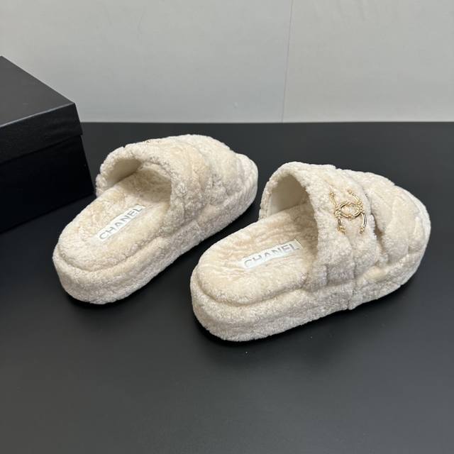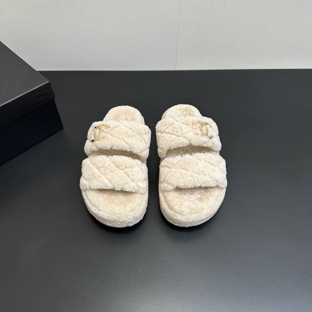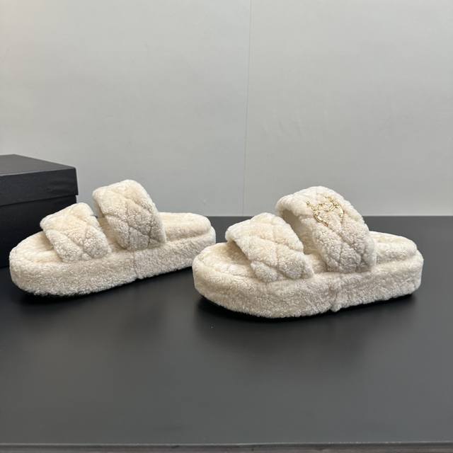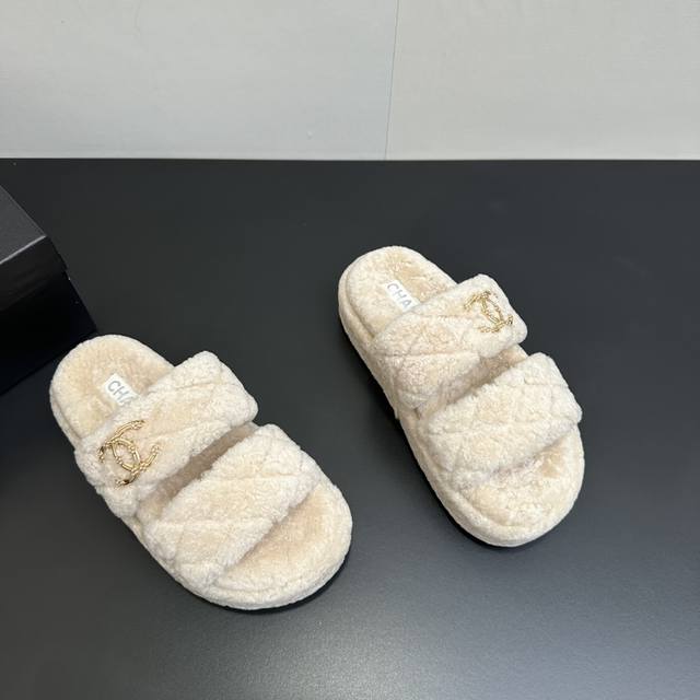 Chanel 2025 Autumn/Winter Lazy Sheep Real Wool Slip-on ...