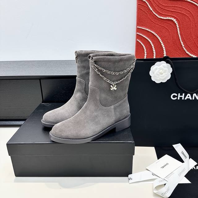 / Chanel 2025 Early Autumn New Arrival, Chanel Double C Chain Pendant Ankle Boots.