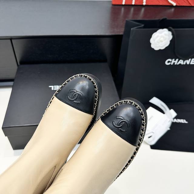 Chanel 2025 Early Autumn New Style Chunky Heel Color Block Chain Ankle Boots Upper: Cowhide Suede Original Outsole Heel Heel Height: Approx. 9cm True to Size: 35-39 (Made to order 40.41)