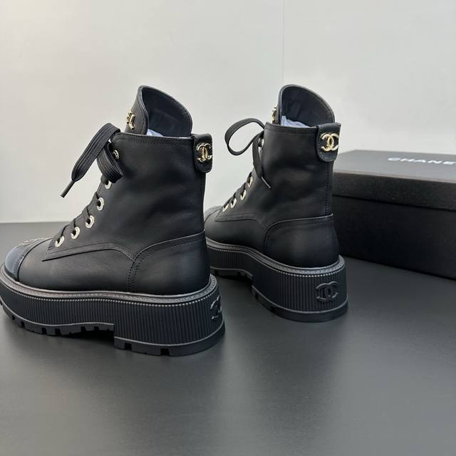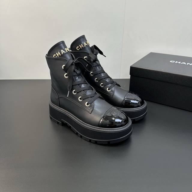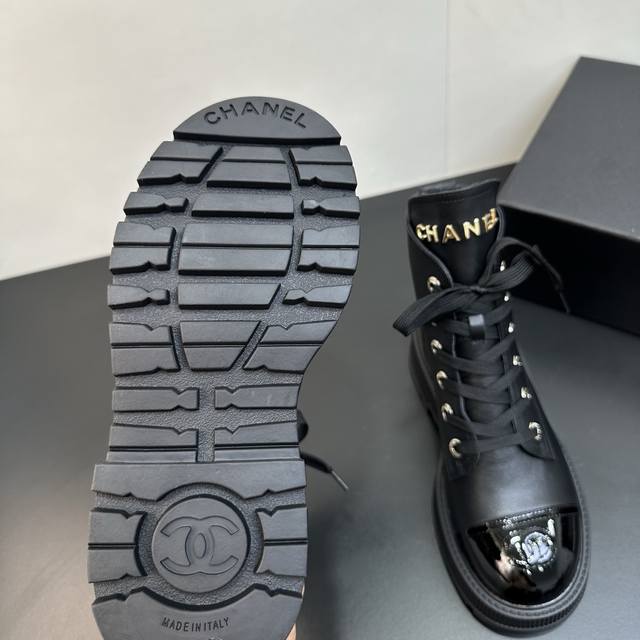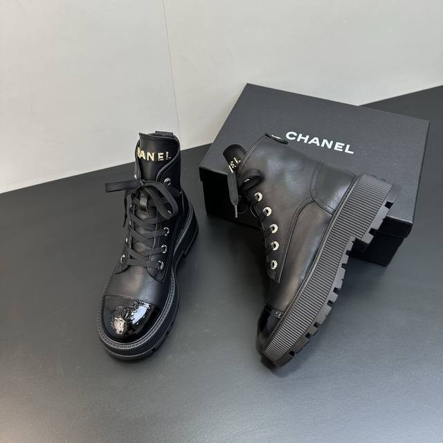 Chanel 2025 Fall/Winter Lambskin Lace-up Ankle Boots - New Arrival! The design is a classic Chanel Dr. Martens style, sleek and stylish. The upper is made of super soft cowhide, offering a comfortable and supportive feel against the skin, with a structured and full silhouette for a chic look! The lining is soft, water-dyed lambskin! Original rubber outsole. Exclusive top-quality product, sizes 35-41. Custom orders available for sizes 40 and 41.