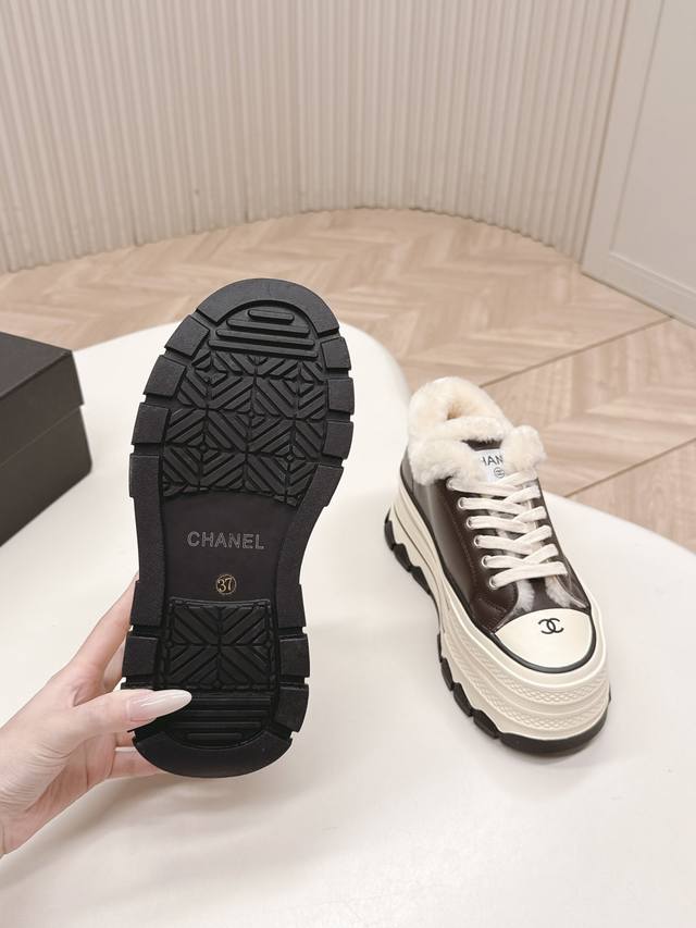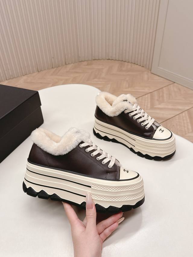 Chanel 2025 Fall/Winter New Platform Wool Biscuit Shoes DDD Chanel 2025 Fall/Winter New Platform Wool Biscuit Shoes DDD Maintaining the chic and playful style of chunky sneakers, these platform shoes are effortlessly stylish, a blessing for petite women, DDD easily elongating the leg line. They look incredibly good on, are comfortable, and versatile! DDD Upper made of cowhide leather + wool lining DDD Exclusive molded rubber outsole DDD Sole thickness approximately 5cm DDD Size: 35-39 40 41 Custom orders are non-refundable and non-exchangeable DDD