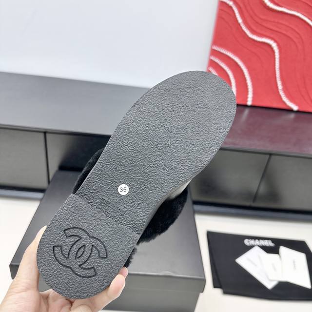 Chanel 2025 Winter New Arrival: Wool Platform Slippers DDD These are the perfect way to bring the joy of "staying home" to the outdoors. The backless design is incredibly comfortable and warm, enveloping you in soft comfort. The classic logo sits atop the toe, exuding understated elegance. No need for complicated styling; just slip them on and grab your bag. They're the kind of comfortable slippers you'll never tire of wearing in autumn and winter. DDD True to size 35-41 DDD