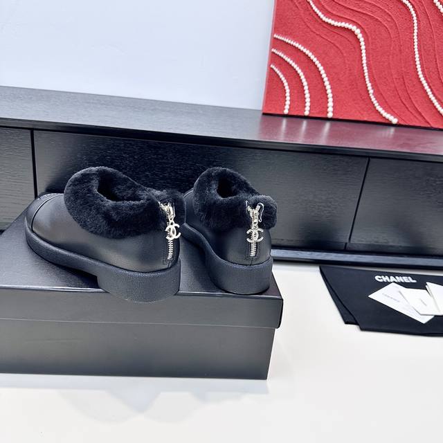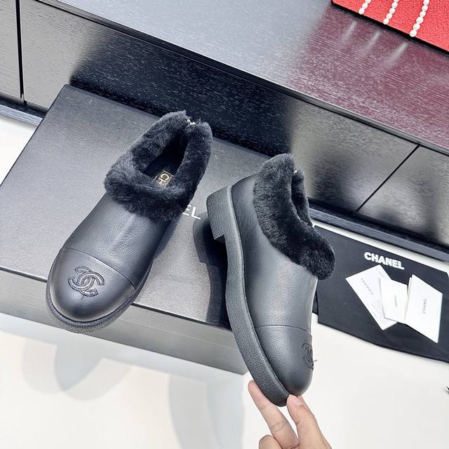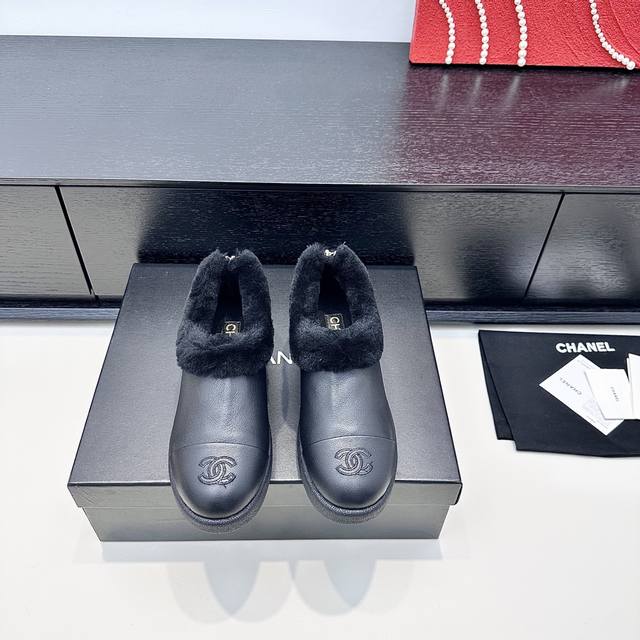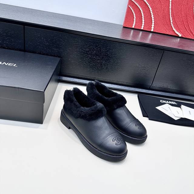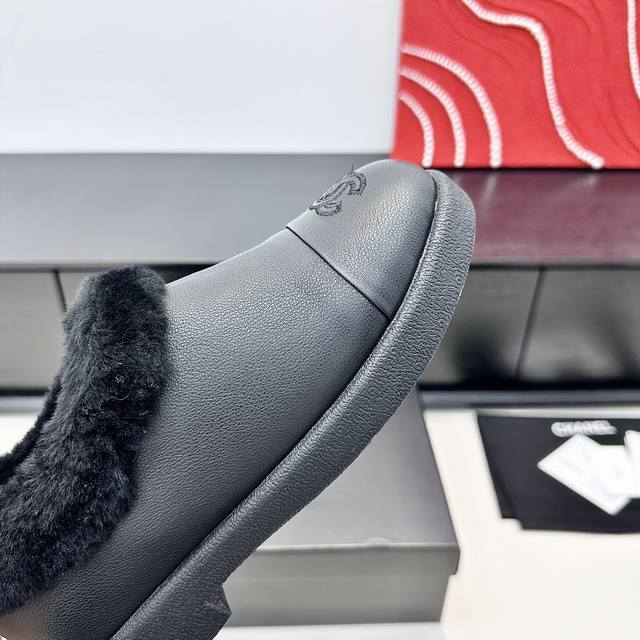 Chanel 2025 Winter New Style Full-Length Slip-On Wool Warm Shoes DDD Like wrapping your feet in a soft, warm cloud, the shoes perfectly cover the ankle, with fluffy edges for added warmth, and the logo on the toe is a subtle yet stylish detail. They feel so light you're practically barefoot, perfect for daily commutes or weekend strolls