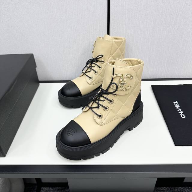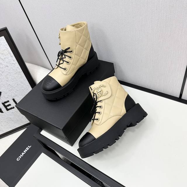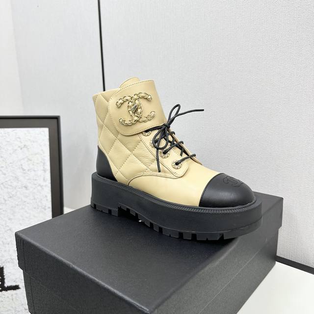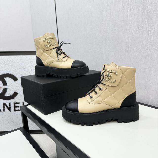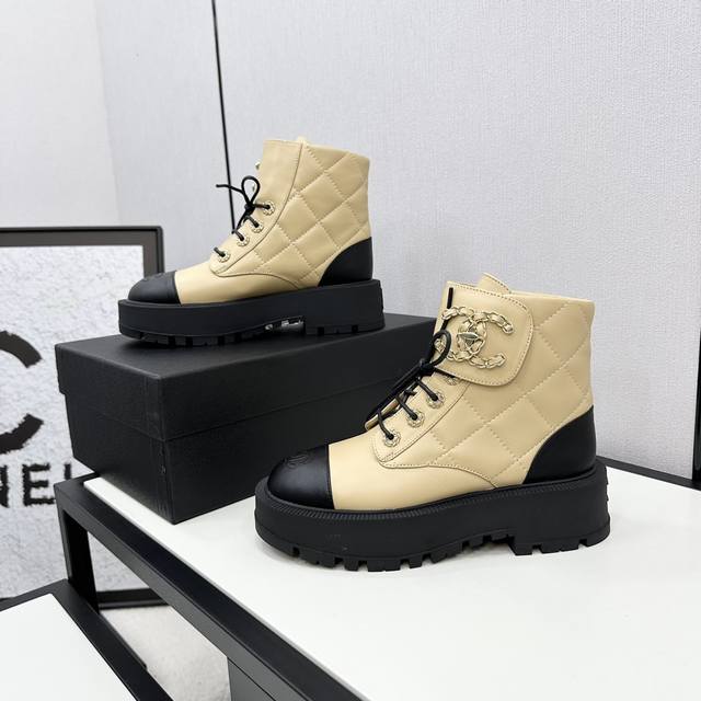 chanel 24B new double C autumn and winter Martin thick-soled boots.