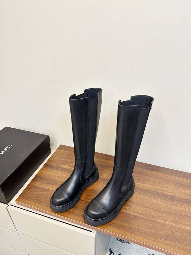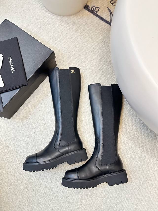Chanel 24K New Chelsea Boots, Rider Boots, Fall/Winter Runway Style, Super Flattering and Versatile, Easy for Any Girl to Wear, Imported Calfskin Upper, Sheepskin Lining, Original Mold, Wear-Resistant Foam Sole, Size: 35-40, 40 Made to Order