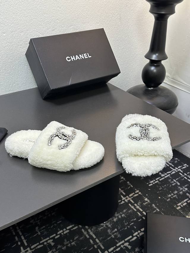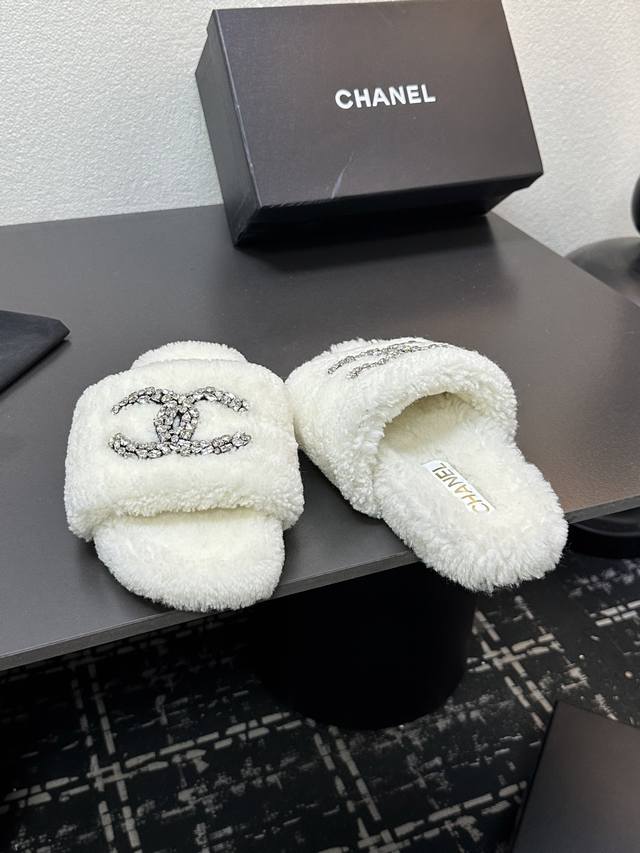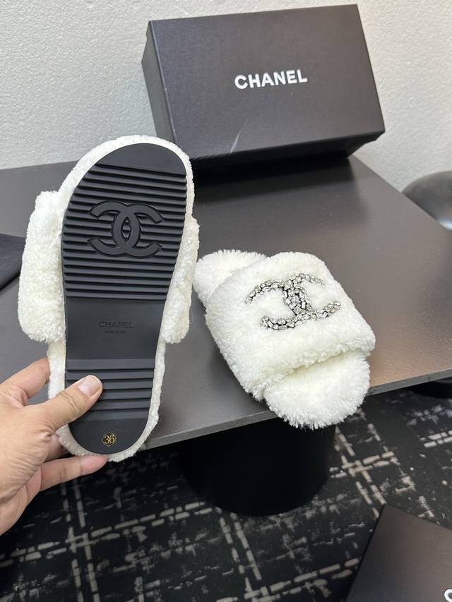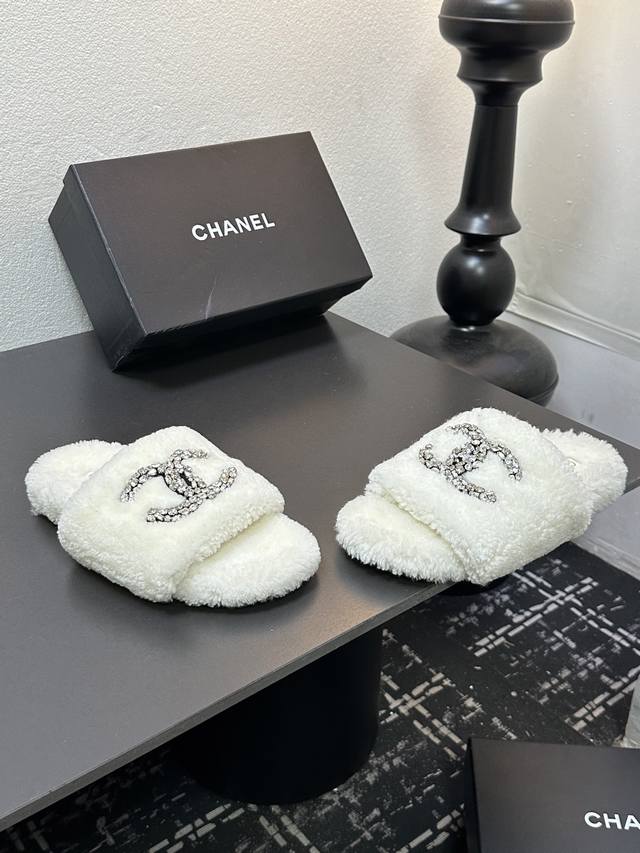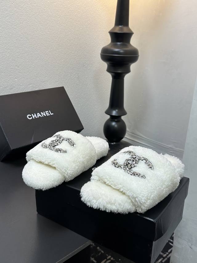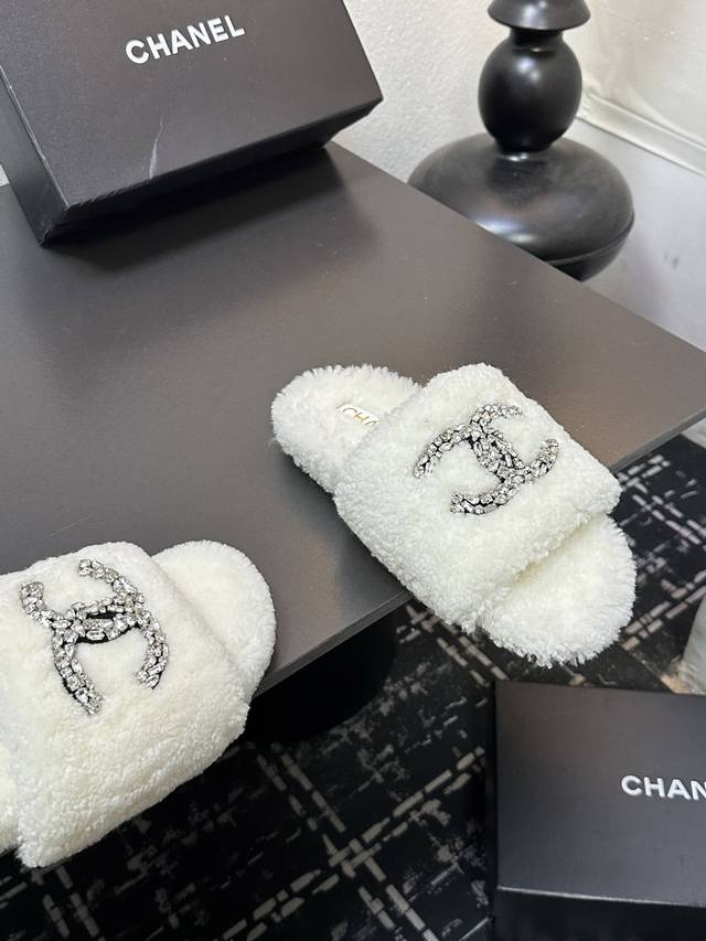 Chanel 25 latest fur slippers with diamond embellishments are now on sale! High-end feel! Can be worn outdoors or at home, high-quality craftsmanship, handsome and stylish for autumn and winter, showing a different visual beauty