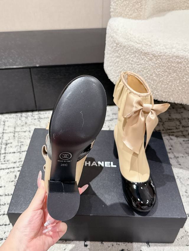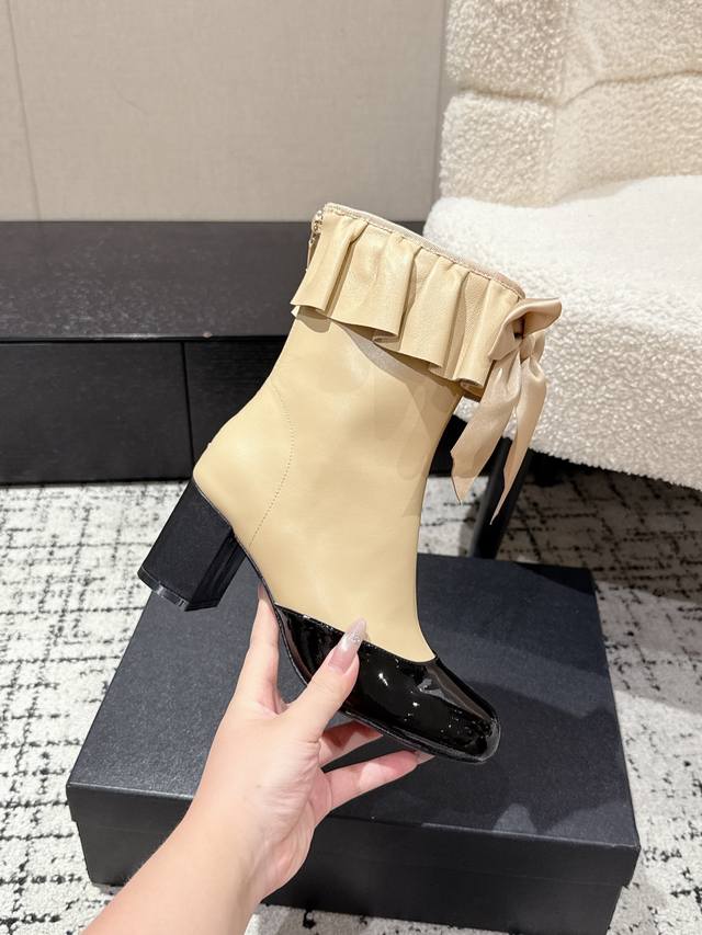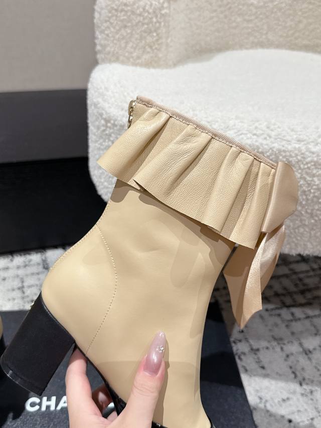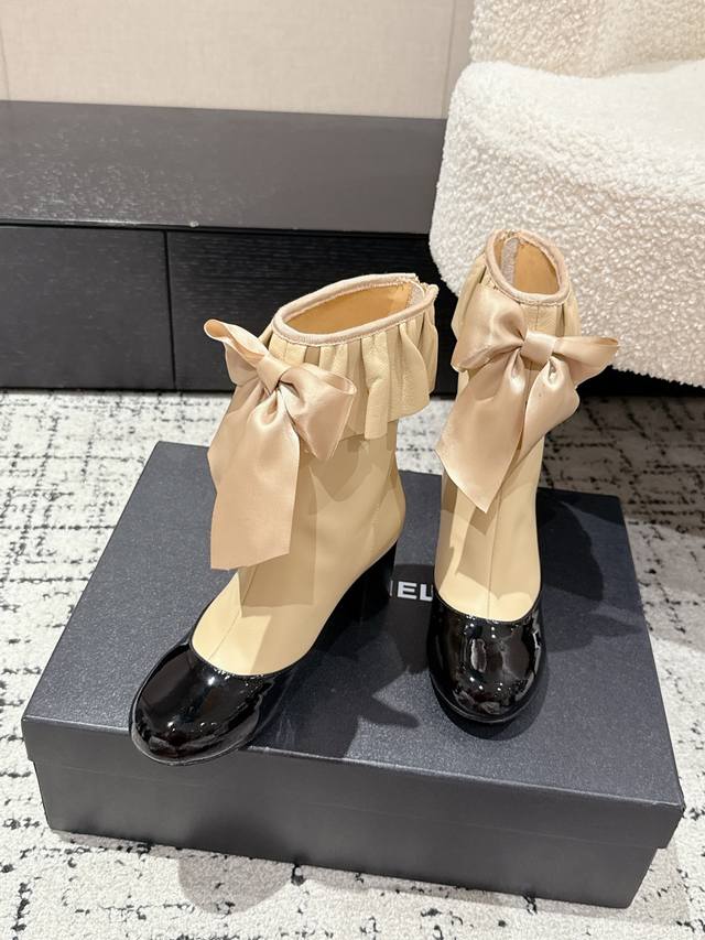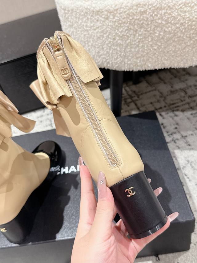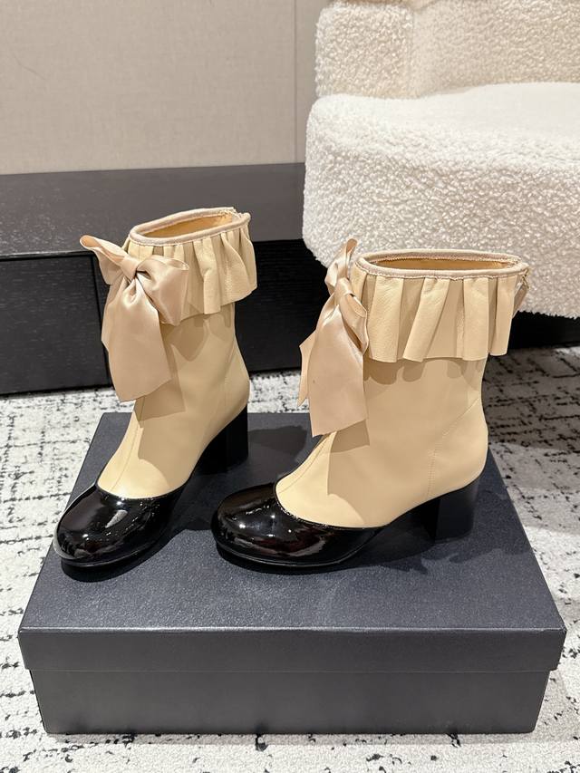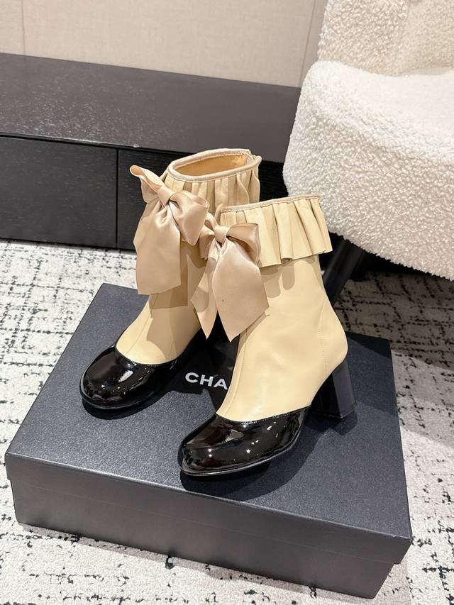 Chanel 25 Ss new arrival from the Autumn/Winter runway, the Chanel Double C Bow Pleated Stretch Ankle Boots