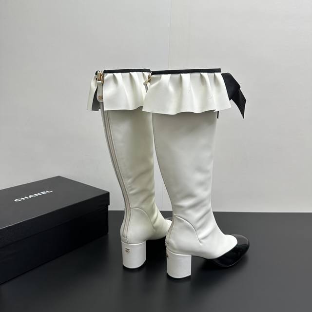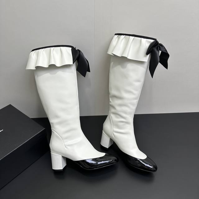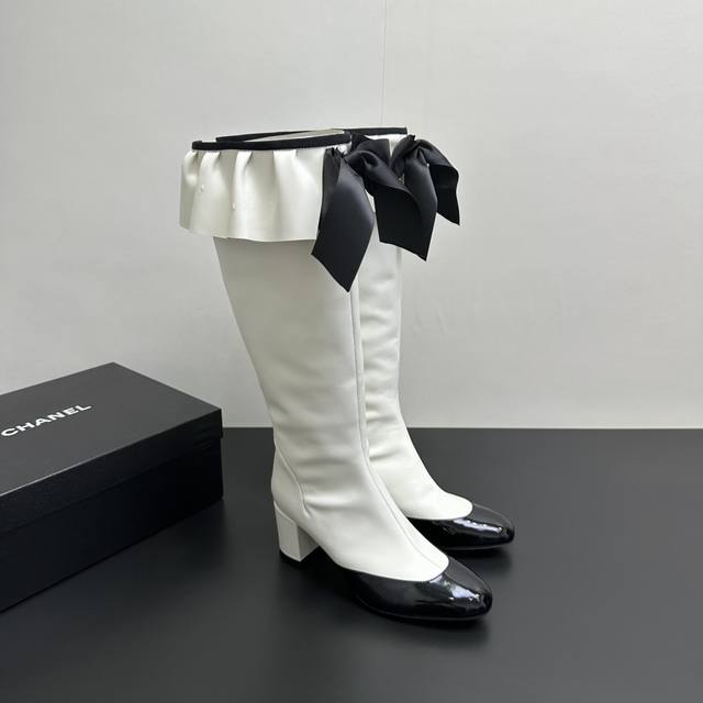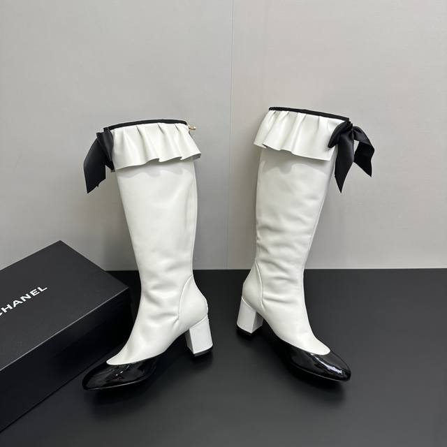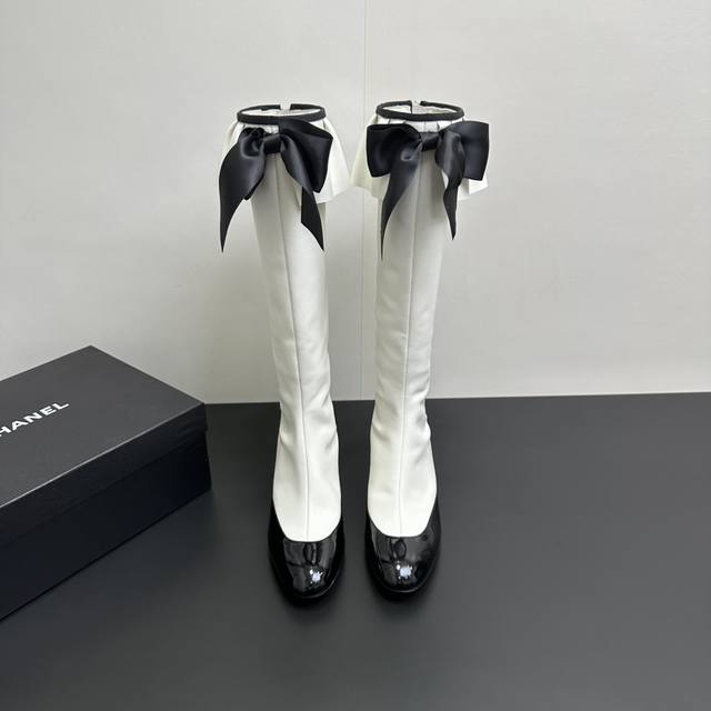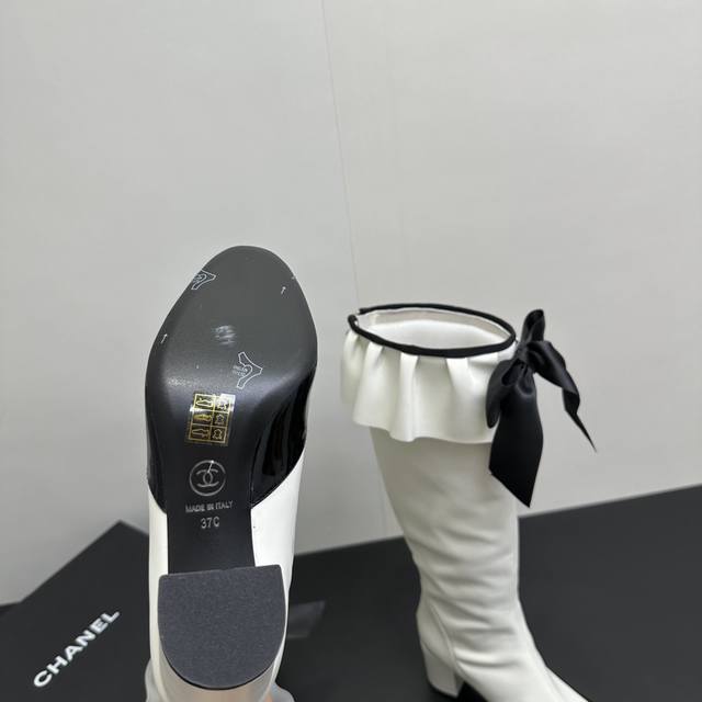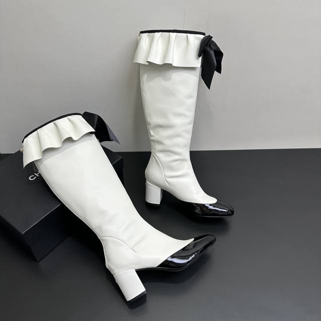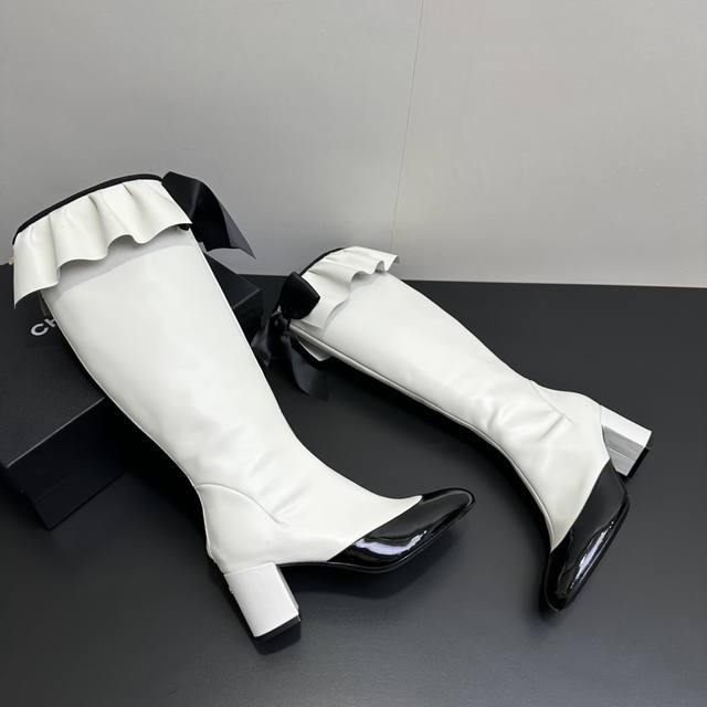 ) When classic Chanel aesthetics collide with trendy footwear design, these pleated bow-knot elastic boots are born, instantly becoming the dream boots of fashionistas. The iconic, exquisite bow adorns the center of the boot, its elegant satin bow paired with delicate metal buckles that shimmer in the sunlight, perfectly embodying the brand's elegant romance. Every step is the focus of attention. The pleated opening is the crowning touch of these boots; the layers of pleats, like gently surging waves, create a three-dimensional effect, effortlessly adding a touch of romance and casualness to the overall look.