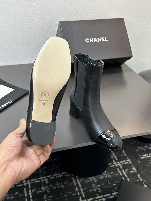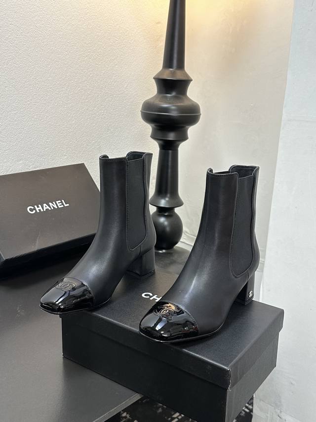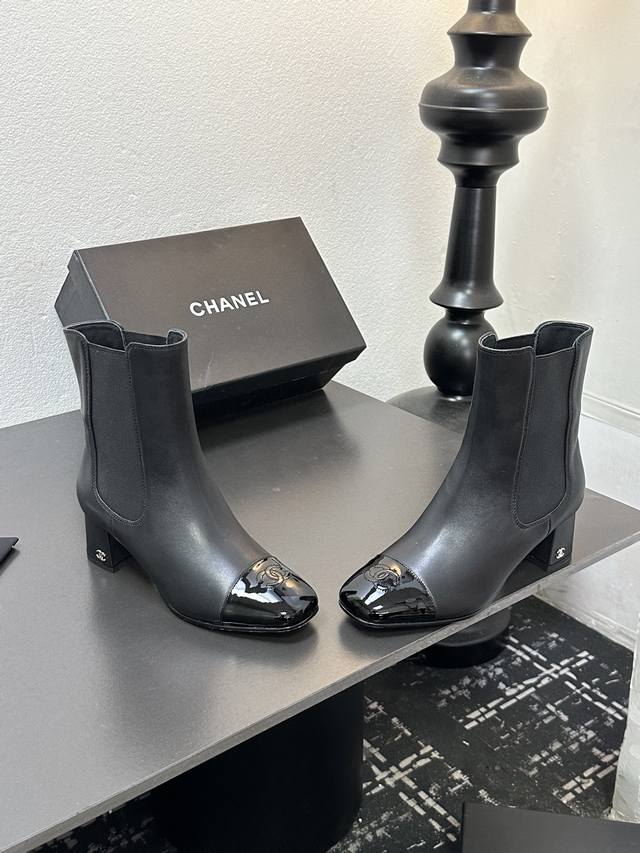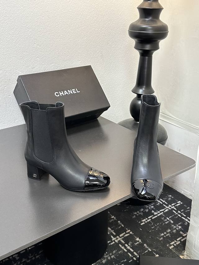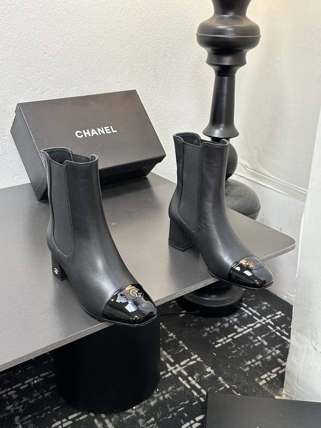 Chanel Classic Color-Blocked Pearl Heel Elastic Ankle Boots Chelsea Boots The cl