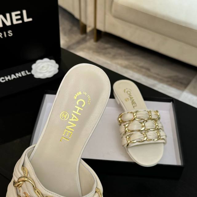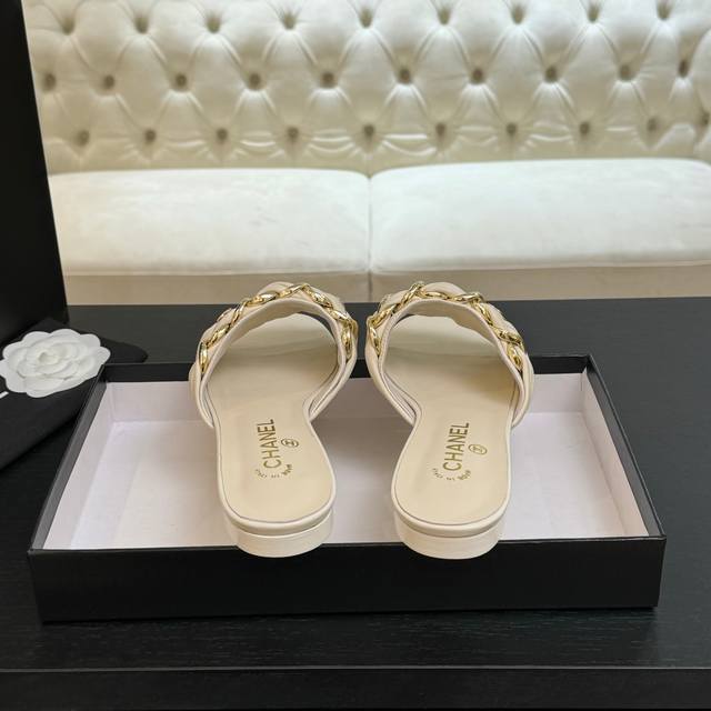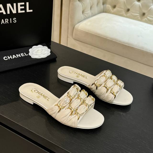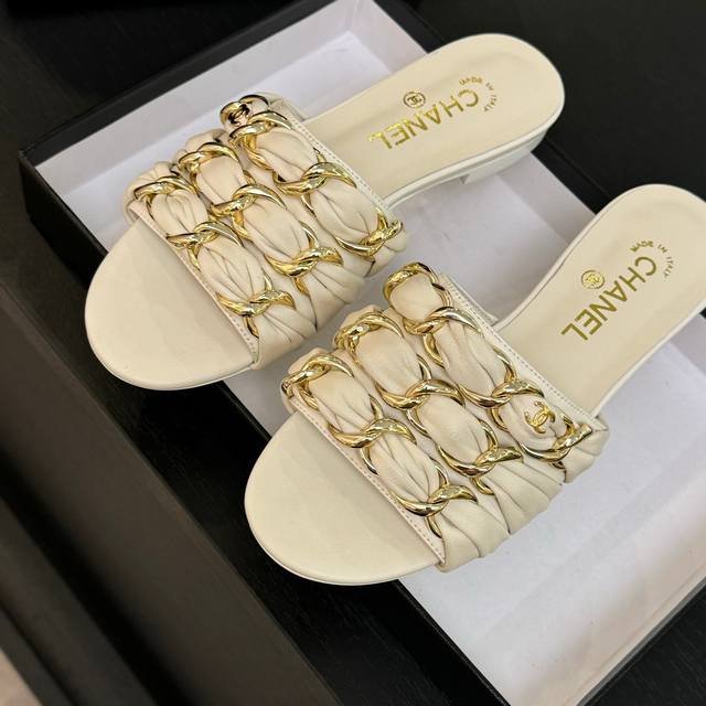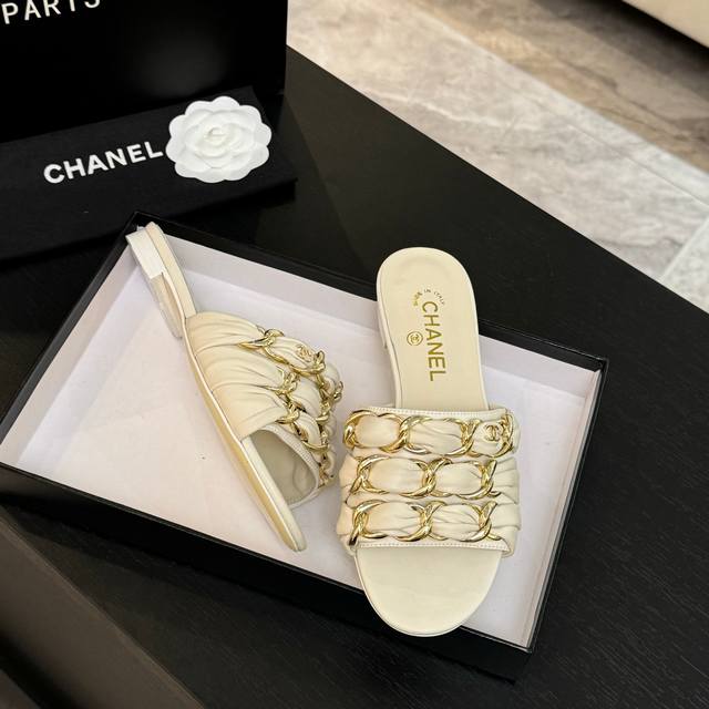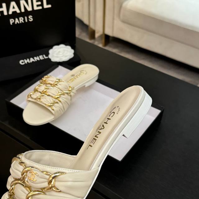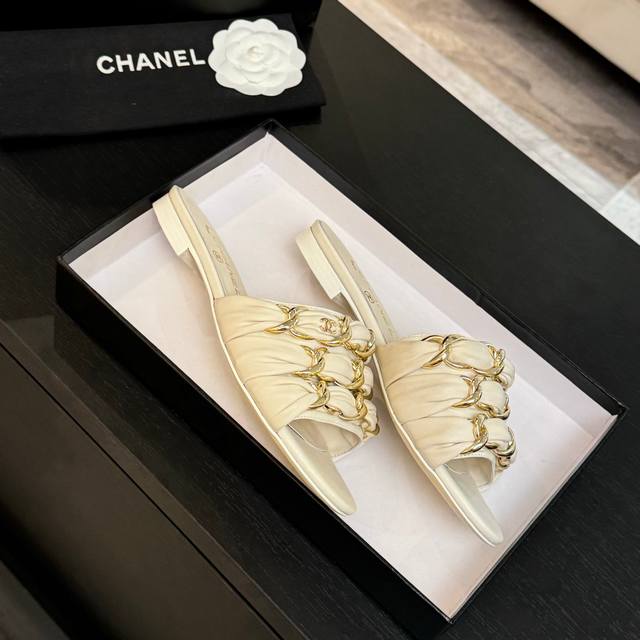 Chain sandals are a hit this year, captivating with their effortless beauty and effortless elegance, yet imbued with Chanel's signature sleekness. From the leather to the hardware, they're a luxurious touch, offering a comfortable and stylish look!
