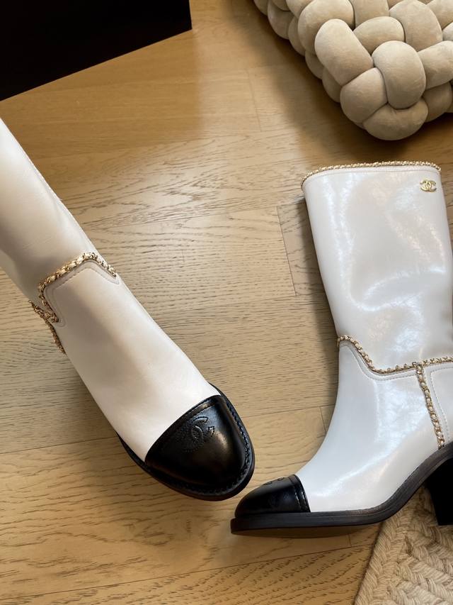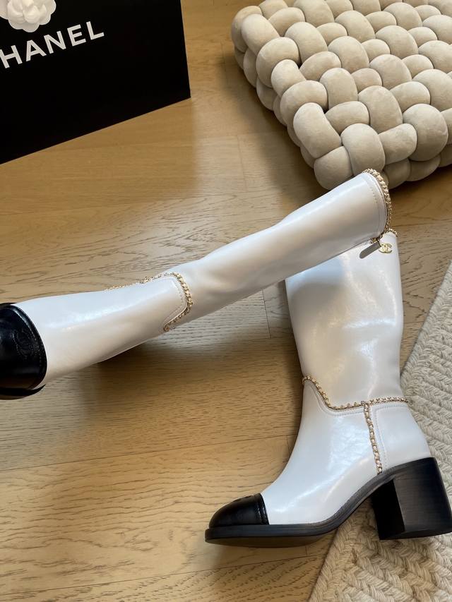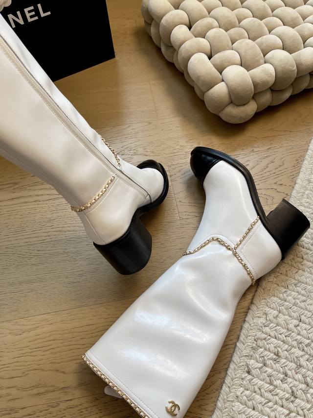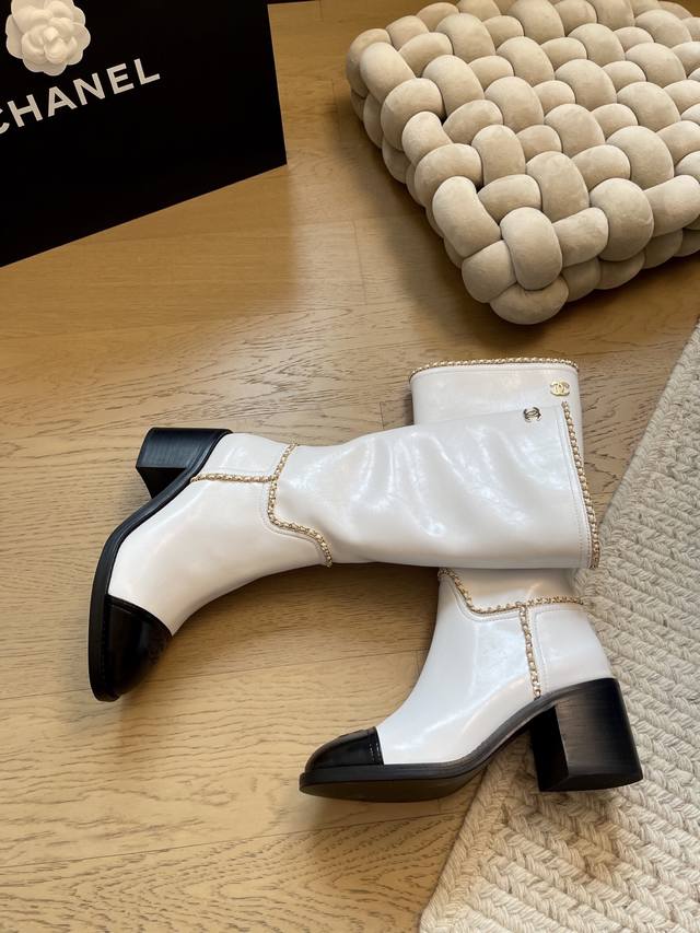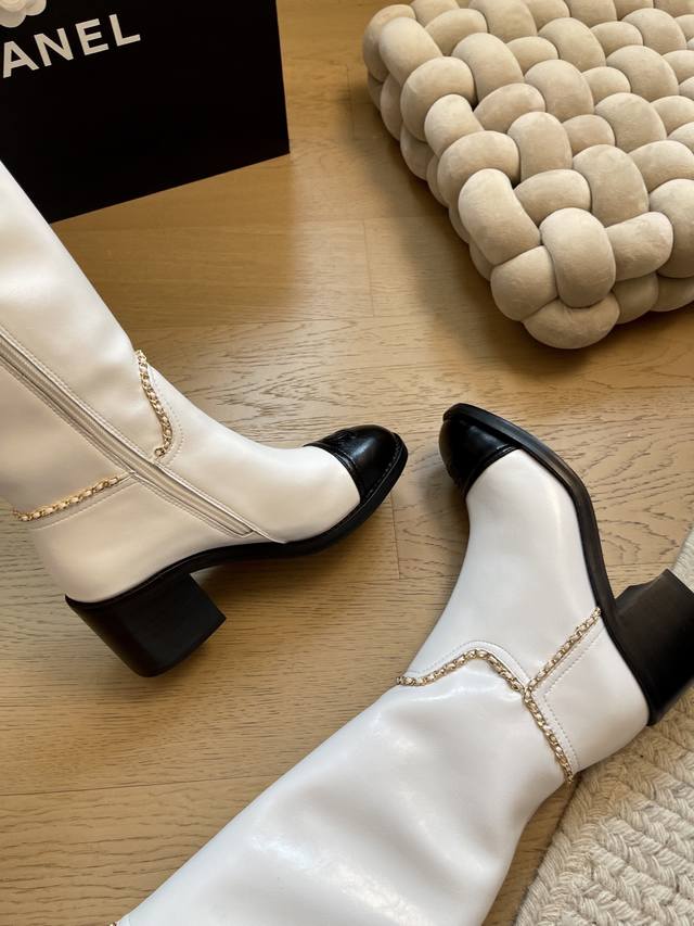 Chanel 25K Classic Chain Chunky Heel Boots! Top-tier