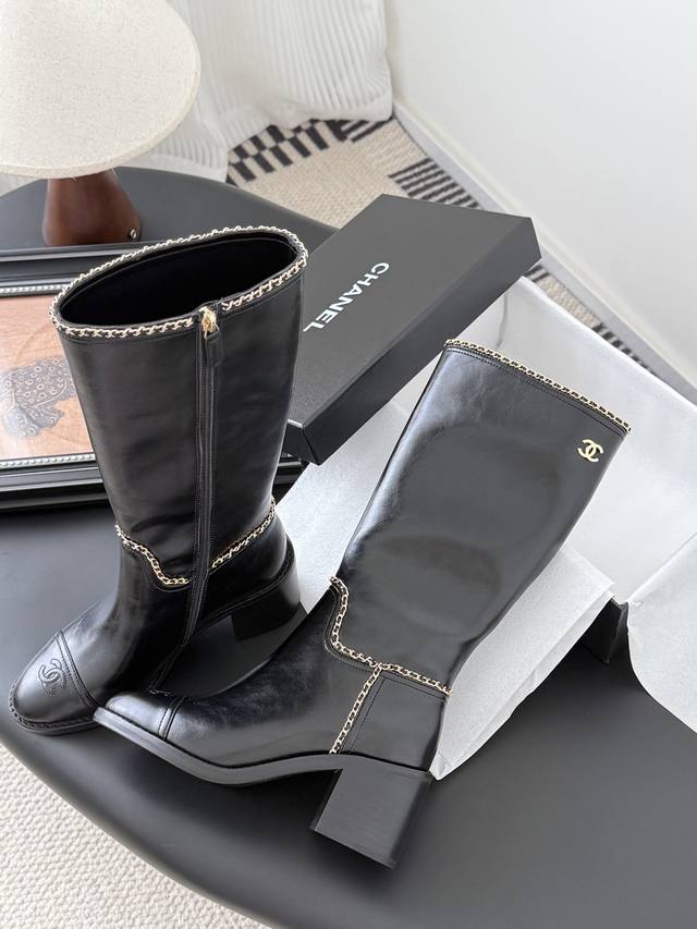 Chanel 25K Classic Chain Riding Boots. High quality and craftsmanship! Genuine leather upper and lining, original leather outsole! Size: 35-39. Other sizes are custom-made.