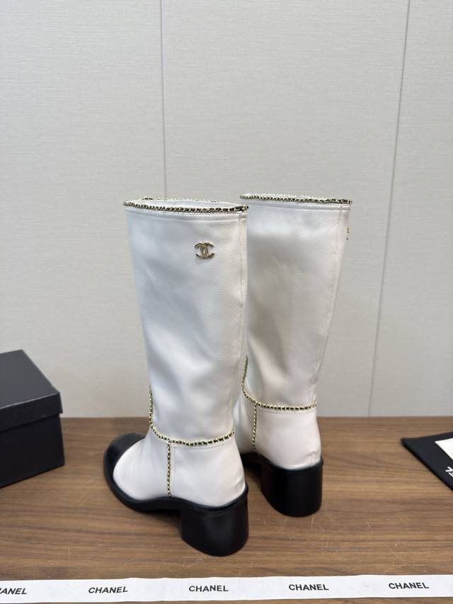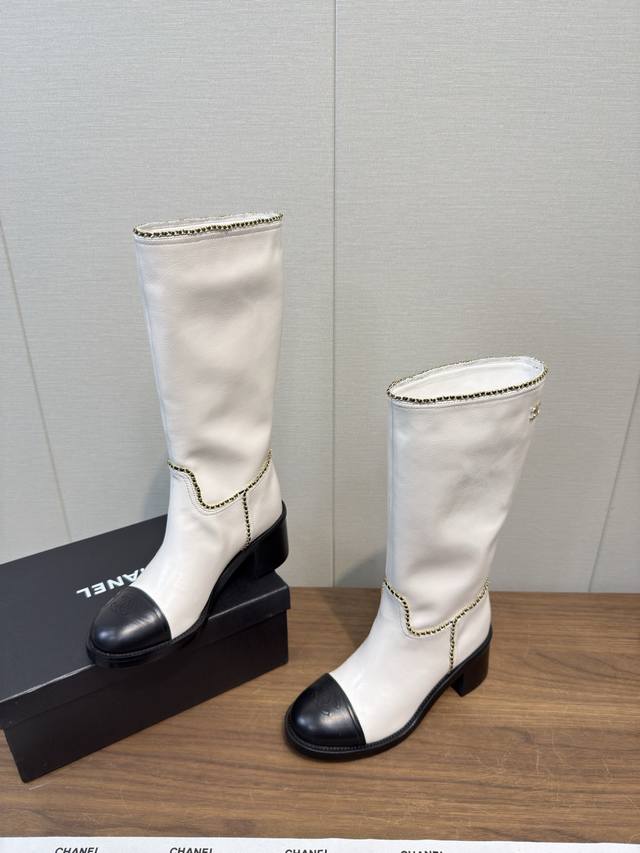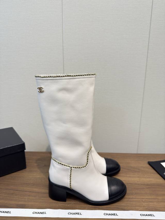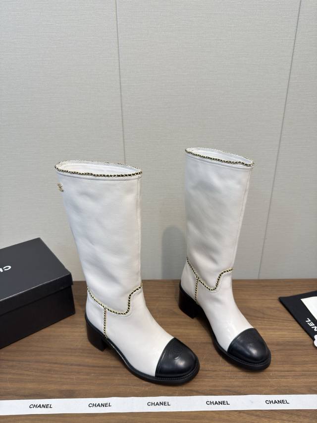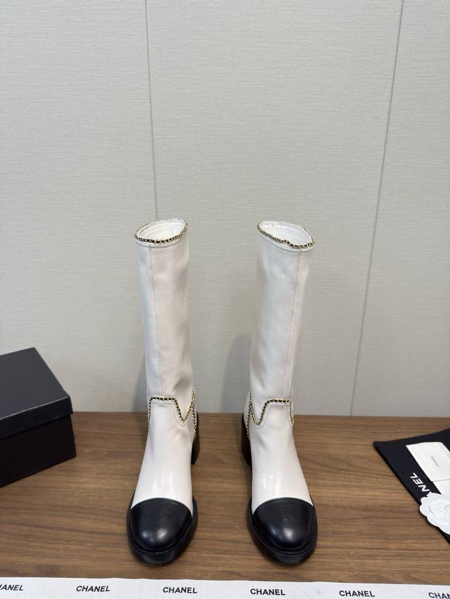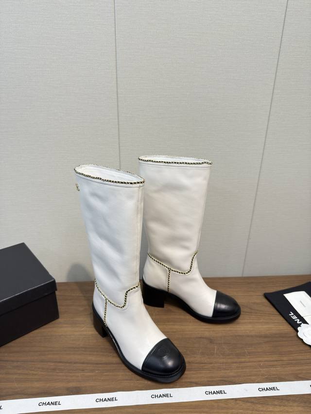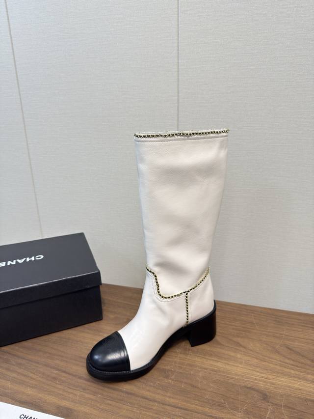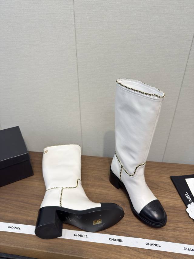 Chanel 25K Early Autumn/Winter Retro Chain Chelsea Boots (High-Quality Version) When Chanel long boots meet winter, fashion and warmth bloom together. The patent leather's sheen is like the depth of night, the suede's softness like the afternoon sun, and the patchwork design cleverly outlines an exquisite silhouette. Classic elements are incorporated into every detail, and the mid-heel is a perfect balance of elegance and comfort. Whether strolling through the city streets or attending an elegant party, it will make you shine in the crowd, becoming the focus of fashion, with every step exuding unique charm! Upper: Custom-made original cowhide Insole: Sheepskin Outsole: Original replica genuine leather Heel Height: 7.5 Sizes: 35-39 Sizes 40 and 41 are custom-made and non-refundable.