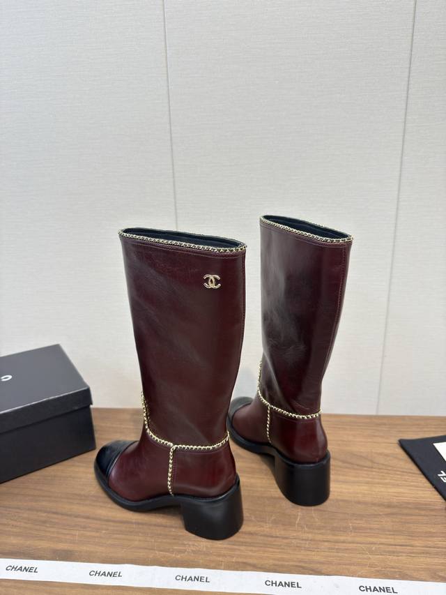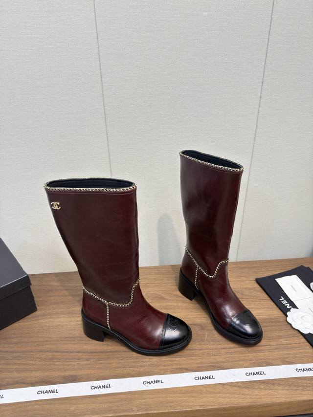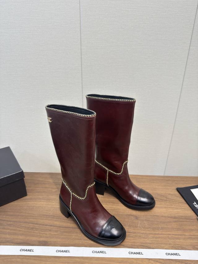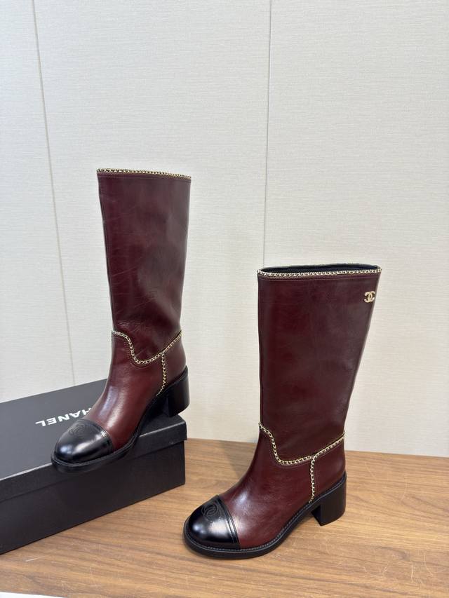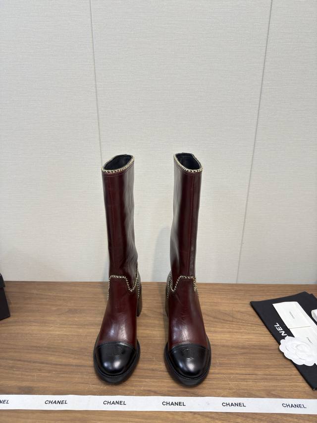 Chanel 25K Early Autumn/Winter Retro Chain Chelsea Boots (High-Quality Version) When Chanel long boots meet winter, fashion and warmth bloom together. The patent leather's sheen is like the depth of night, the suede's softness like the afternoon sun, and the patchwork design cleverly outlines an exquisite silhouette. Classic elements are incorporated into every detail, and the mid-heel is a perfect balance of elegance and comfort. Whether strolling through the city streets or attending an elegant party, it will make you shine in the crowd, becoming the focus of fashion, with every step exuding unique charm! Upper: Custom-made original cowhide Insole: Sheepskin Outsole: Original replica genuine leather Heel Height: 7.5 Sizes: 35-39 Sizes 40 and 41 are custom-made and non-refundable.