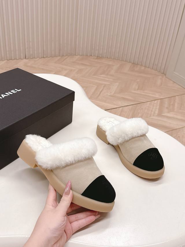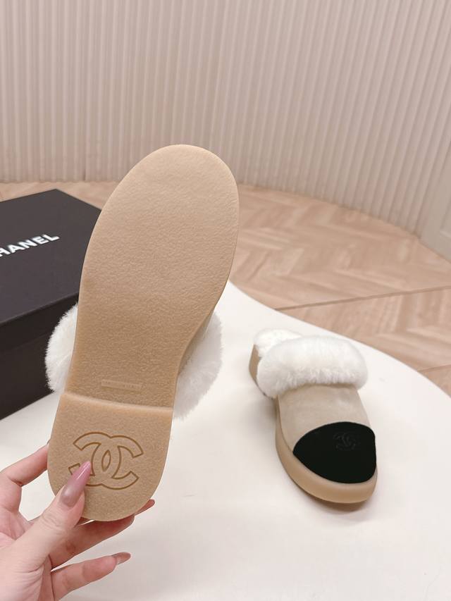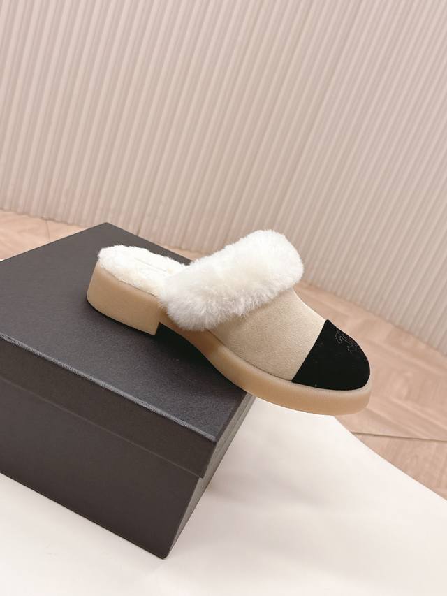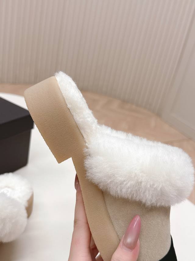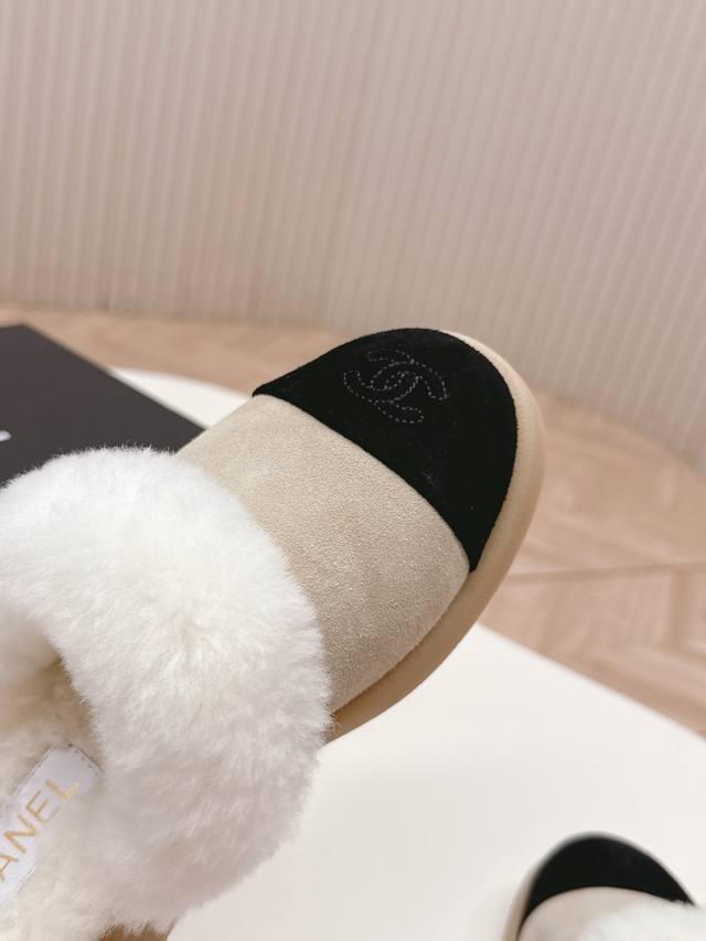Chanel 25K Fall/Winter New Style Furry Slippers - Classic, High-End, Elegant, Gentle, and Free-spirited~ Super stylish and comfortable on the feet, the thick sole enhances your temperament. Material: Imported sheepskin, soft and comfortable. Lining: Custom wool. Sole: Original outsole. Sizes: 35-40.