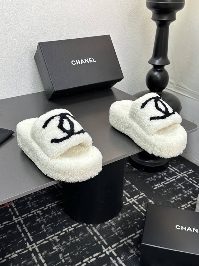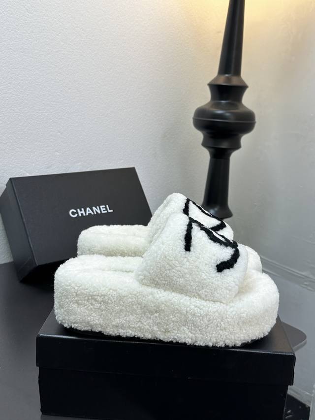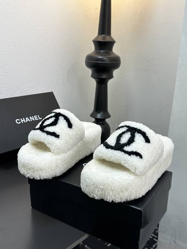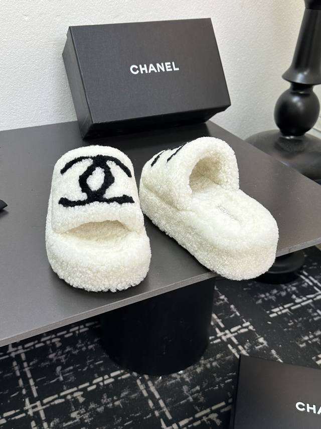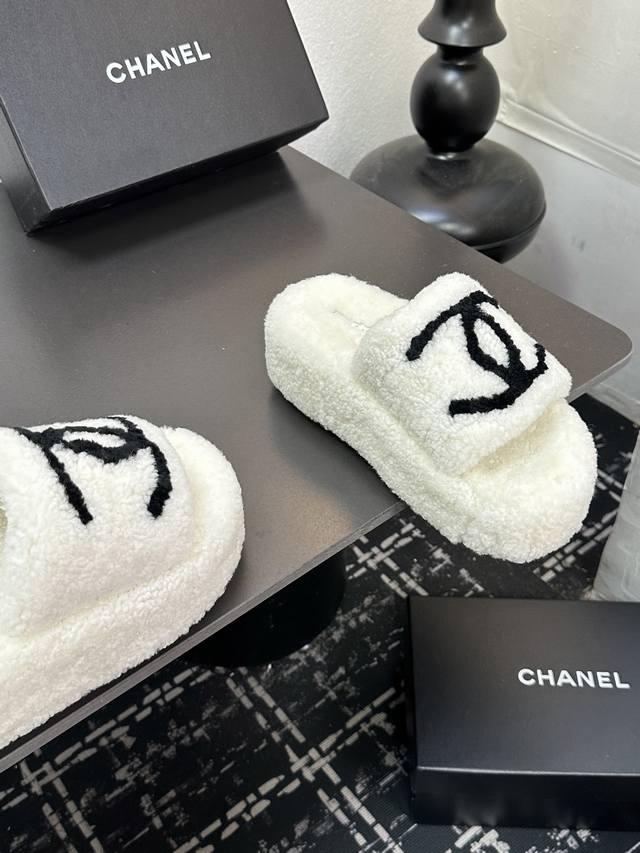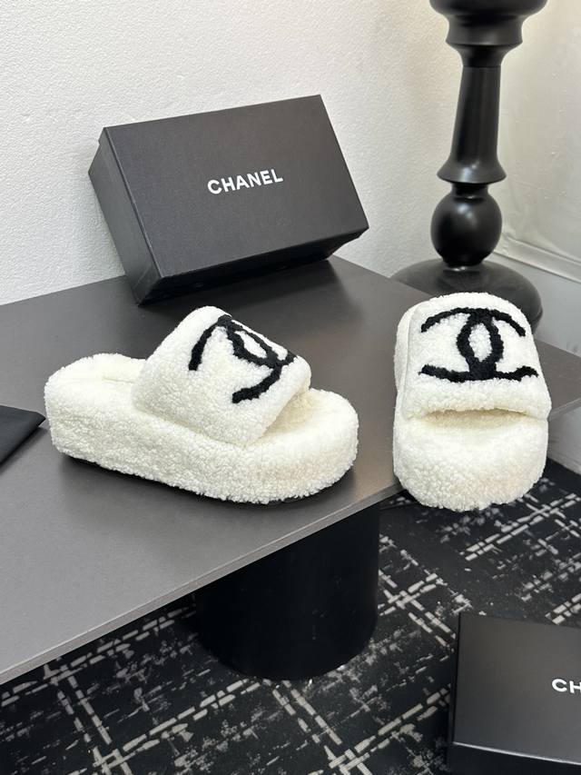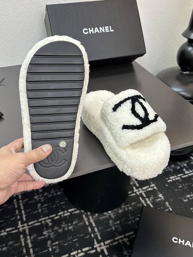 Chanel 25K New Furry Slippers! These furry slippers are absolutely adorable! The soft, fluffy fur is comfortable and warm. They also make your legs look longer and add height. Perfect for a casual and relaxed look when paired with socks in autumn and winter. They look great and stylish on your feet. Made with imported wool, the fabric is delicate, soft, and silky. Original molded rubber sole. Sizes: 35-39, 40, 41 (custom sizes available).