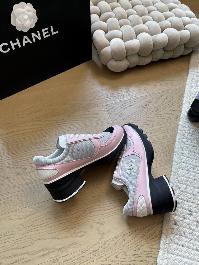 Chanel 25K platform chunky heel sneakers! Top-tier version! Early release! Made with cowhide upper, sheepskin lining, breathable mesh, and original outsole. Sizes: 34-41. Custom orders are non-refundable and non-exchangeable.