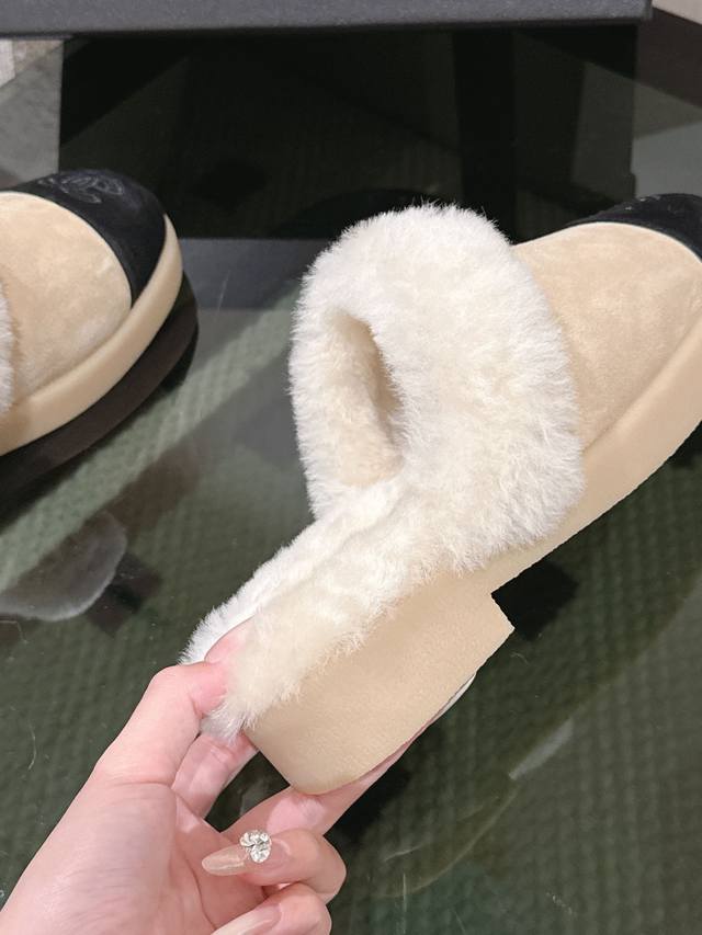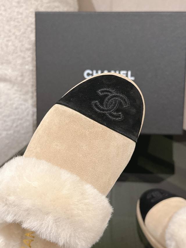 Chanel 25K Series Double C Color-Blocked Furry Snow Boots DDD Beige suede with black accents, featuring the classic double C logo for easy identification. Soft wool lining for warmth and comfort, perfect for autumn and winter! Approximately 3cm boot shaft, low-cut design, easy to wear for everyday looks. Rubber outsole for slip resistance, no worries about slipping during outdoor activities. Combining functionality and style, these are essential winter pieces, looking great with skirts or trousers for an effortlessly elegant and casual look. DDD Size: 35-41 Size 41: Custom orders are non-refundable and non-exchangeable. DDD
