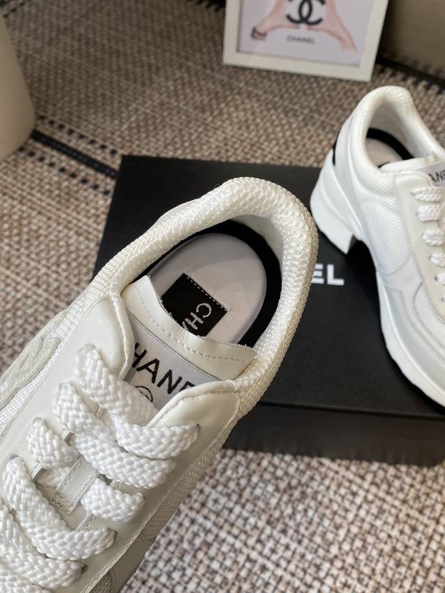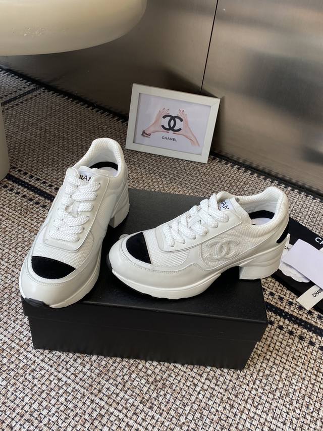 Chanel 25K - The most anticipated high-heeled platform sneakers of the year! Love at first sight! Effortlessly stylish and flattering, perfect for any occasion. A must-have casual sneaker for shoe lovers, versatile and height-enhancing, suitable for everyone. Original design, meticulously crafted for a boutique-quality look. Upper: butter leather + rubber + top-grain cowhide. Lining: breathable mesh. Outsole: TPU. Size: 35-40. Size 40 is custom-made and non-refundable.