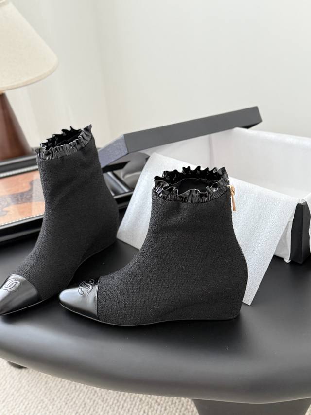Chanel 25p show style thick-soled wedge-heeled Mary Jane boots