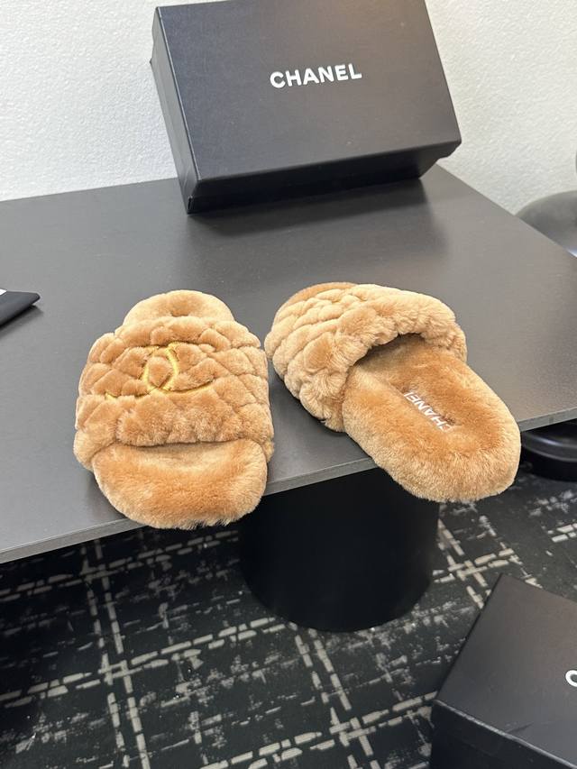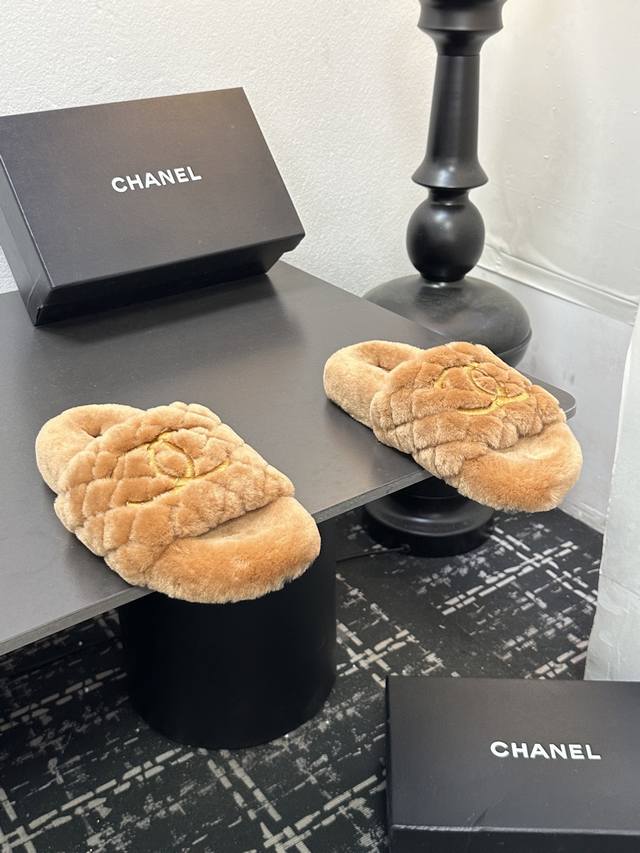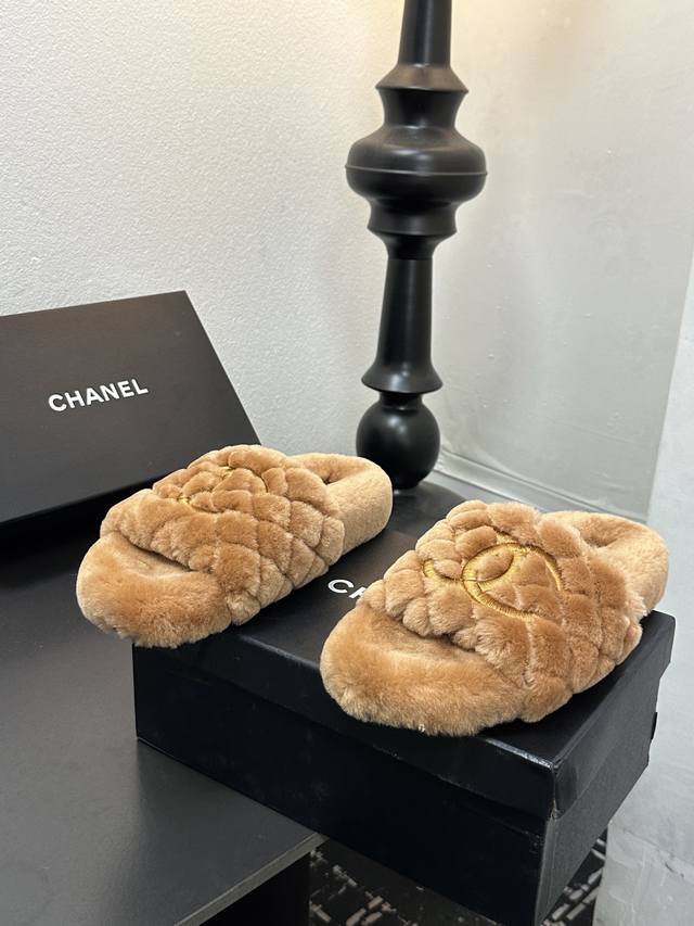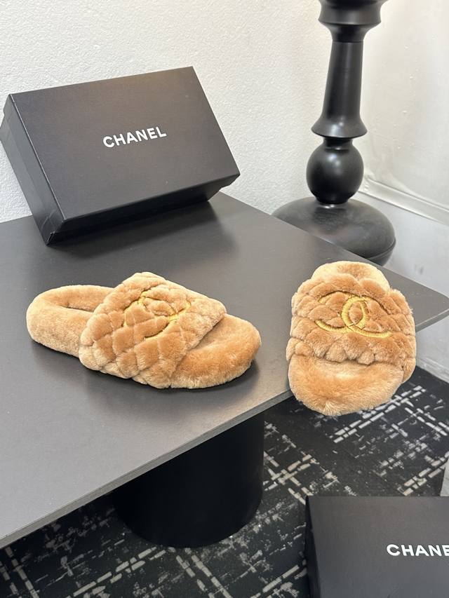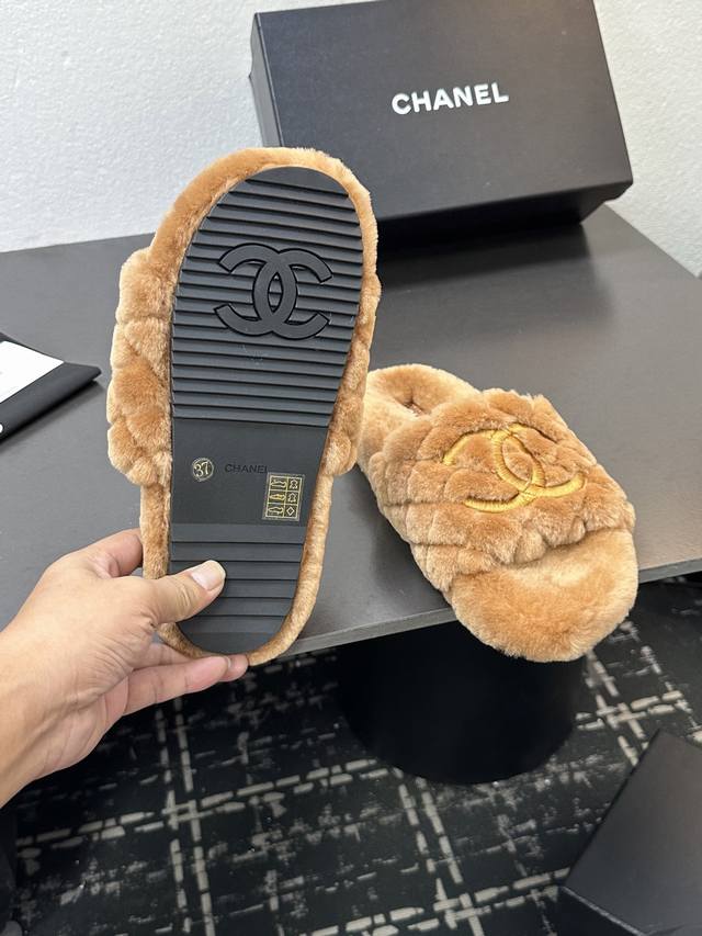 Chanel 25S Furry Wool Slippers, a hot new arrival in the early autumn collection, this season's Chanel must-have! I fell in love at first sight! The classic color blocking is a perfect match! They're incredibly unique, the biggest highlight of these shoes, with a striking yet understated design, super casual and cool. They go perfectly with pants, sweatshirts, or skirts, looking good no matter what. The more I look at them, the more I love them! Upper: Pure wool; Lining: Original lamb's wool; Outsole: Rubber; Size: #35-41 (40 & 41 are custom-made and non-refundable).