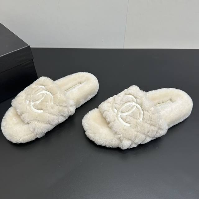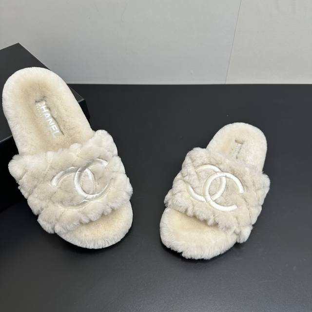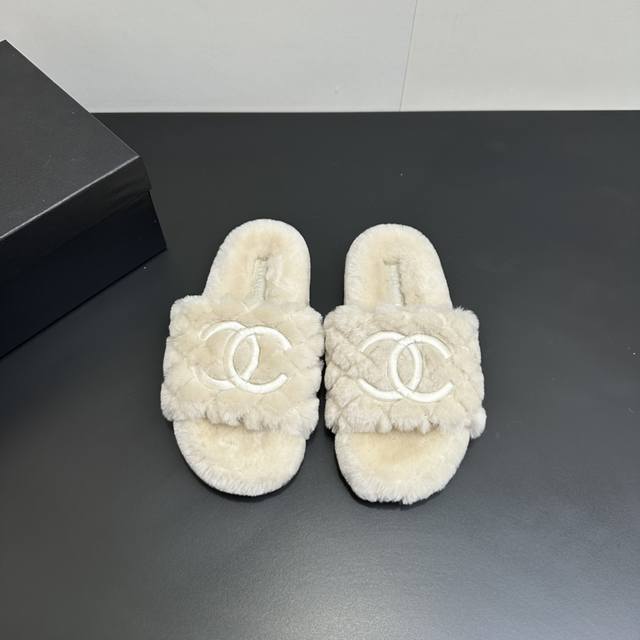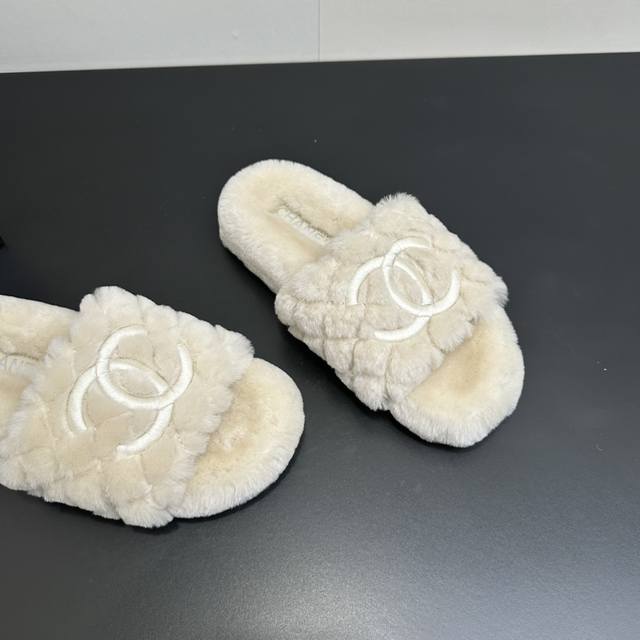 Chanel 25S Furry Wool Slippers, a hot new arrival in the early autumn collection, this season's Chanel must-have! I fell in love at first sight! The classic color blocking is a perfect match! They're incredibly unique, the biggest highlight of these shoes, with a striking yet understated design, super casual and cool. They go perfectly with pants, sweatshirts, or skirts, looking good no matter what. The more I look at them, the more I love them! Upper: Pure wool; Lining: Original lamb's wool; Outsole: Rubber; Size: #35-41 (40 & 41 are custom-made and non-refundable).