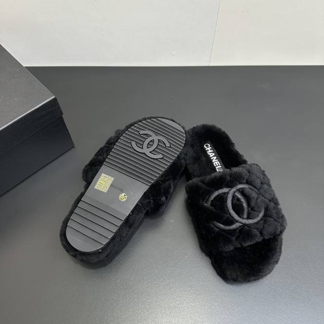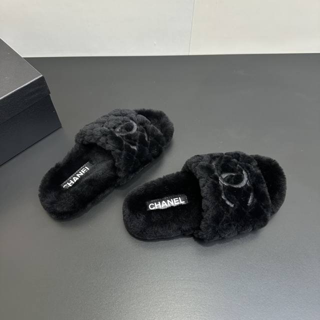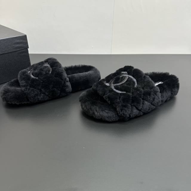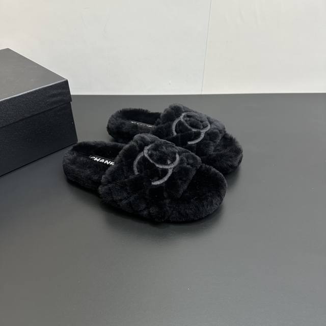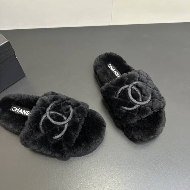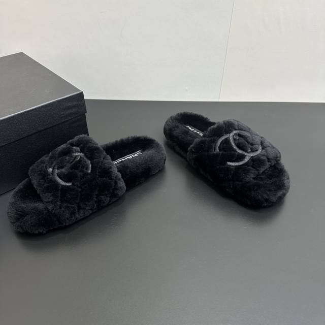 Chanel 25S Furry Wool Slippers, a hot new arrival in the early autumn collection, this season's Chanel must-have! I fell in love at first sight! The classic color blocking is a perfect match! They're incredibly unique, the biggest highlight of these shoes, with a striking yet understated design, super casual and cool. They go perfectly with pants, sweatshirts, or skirts, looking good no matter what. The more I look at them, the more I love them! Upper: Pure wool; Lining: Original lamb's wool; Outsole: Rubber; Size: #35-41 (40 & 41 are custom-made and non-refundable).