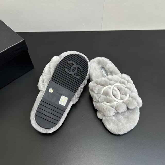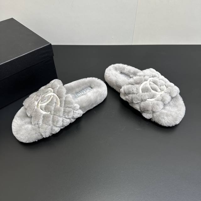 Chanel 25S Furry Wool Slippers, a hot new arrival in the early autumn collection, this season's Chanel must-have! I fell in love at first sight! The classic color blocking is a perfect match! They're incredibly unique, the biggest highlight of these shoes, with a striking yet understated design, super casual and cool. They go perfectly with pants, sweatshirts, or skirts, looking good no matter what. The more I look at them, the more I love them! Upper: Pure wool; Lining: Original lambswool; Outsole: Rubber; Size: #35-41 (40 & 41 are custom-made and non-refundable).
