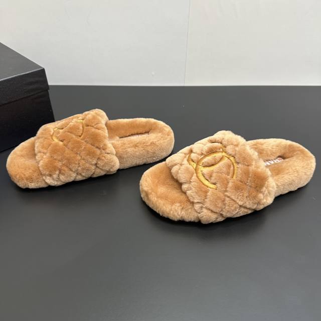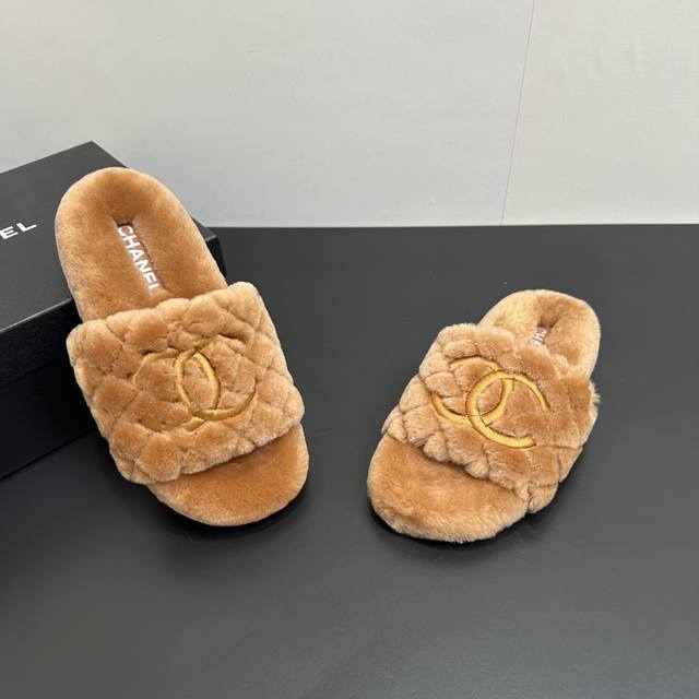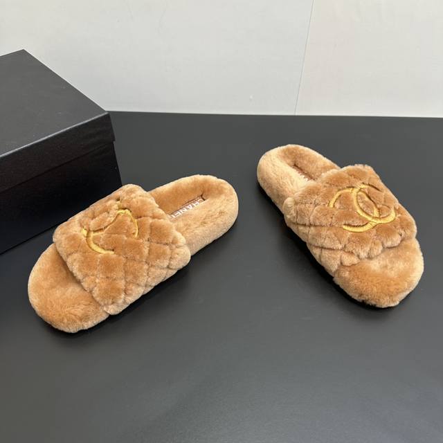 Chanel 25S Furry Wool Slippers, a hot new arrival in the early autumn collection, this season's Chanel must-have! I fell in love at first sight! The classic color blocking is a perfect match! They're incredibly unique, the biggest highlight of these shoes, with a striking yet understated design, super casual and cool. They go perfectly with pants, sweatshirts, or skirts, looking good no matter what. The more I look at them, the more I love them! Upper: Pure wool; Lining: Original lamb's wool; Outsole: Rubber; Size: #35-41 (40 & 41 are custom-made and non-refundable).