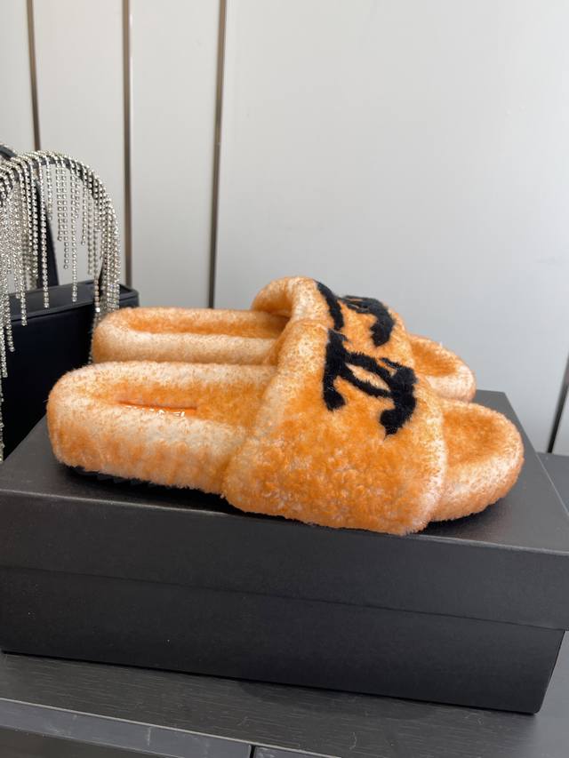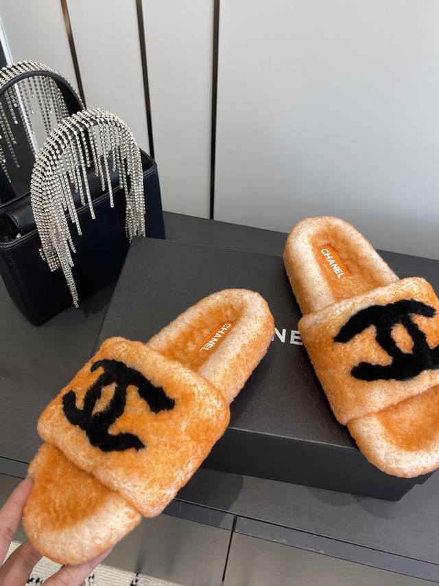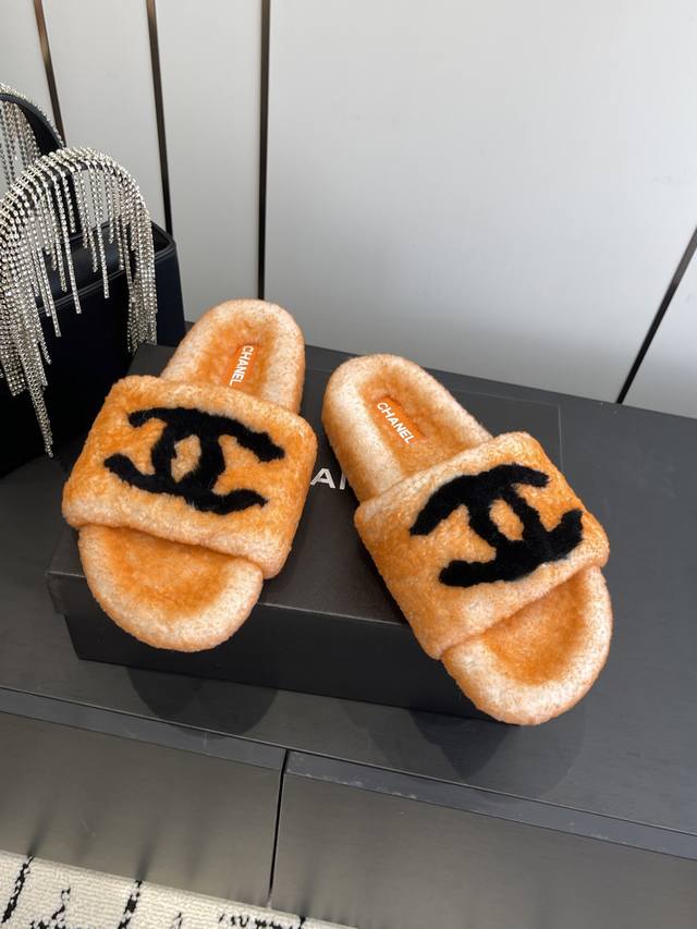 Chanel 25Ss Autumn/Winter New Two-Tone Fleece Slippers, Chanel Thick-Soled Slip-On Fashionable and Casual Series Trendy Fleece Slippers Material: Genuine Leather and Lambswool Lining: Genuine Leather and Lambswool Footpads: Genuine Leather and Lambswool Outsole: Wear-resistant and Non-slip Rubber Outsole Sizes: 35