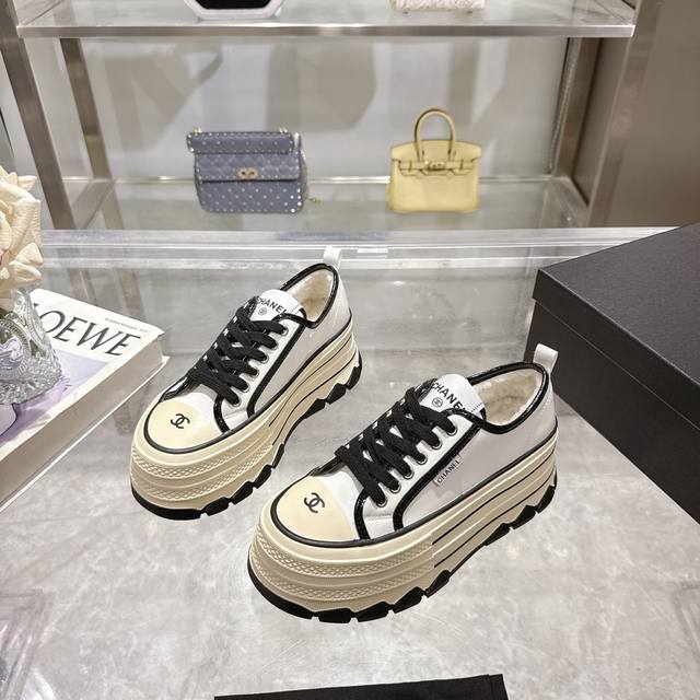 Chanel 25Ss latest white sneakers, casual sports shoes, skateboard shoes, original purchase, developed and manufactured. Another super hot-selling item from Chanel boutiques, a favorite of internet celebrities and bloggers, receiving countless praises on social media. Highly popular, breathable, and perfect for spring and summer. Seeing this style always awakens a girl's inner desire for fashion. Made of the latest calfskin leather, classic black and white color scheme, incredibly stylish and easy to care for. #Material: Original custom imported cowhide leather #Lining: Custom soft wool lining #Outsole: Original molded TPU anti-slip outsole #Sole thickness: 2.5cm Sizes: 35-40 Price: Price not specified]