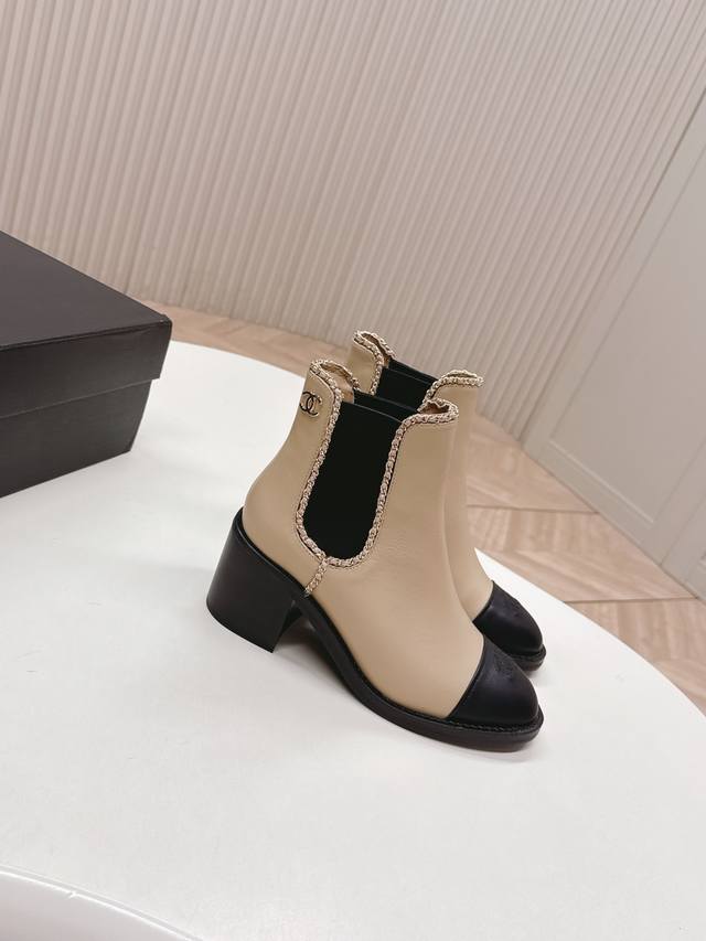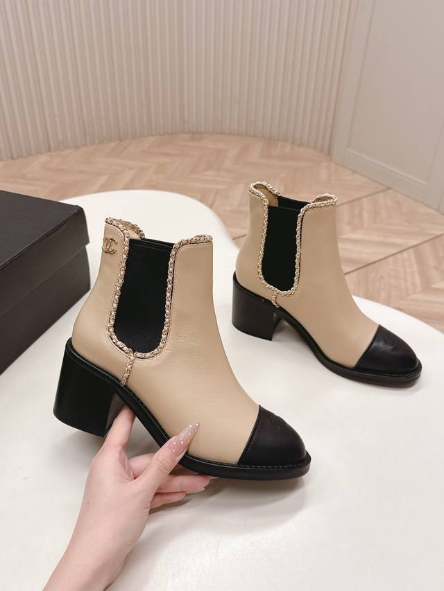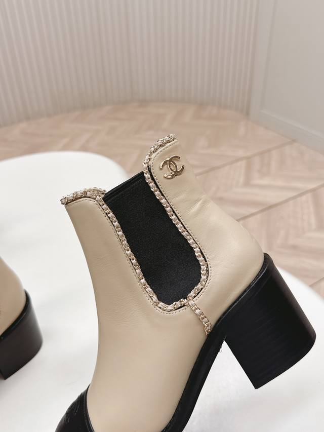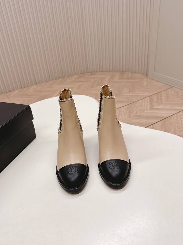 Chanel 25Ss New Autumn/Winter High-Heeled Martin Boots, Ankle Boots, Versatile and Slim Fit. Three-dimensional and full shape, comfortable to wear and exudes confidence. Elasticated slip-on design for easy wear. Classic chain hardware for a sophisticated and elegant look. Upper: Cowhide. Lining: Cowhide. Insole: Genuine leather. Size: 35-39 40