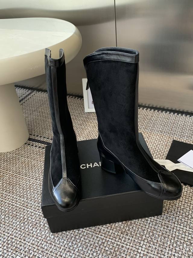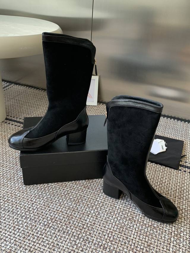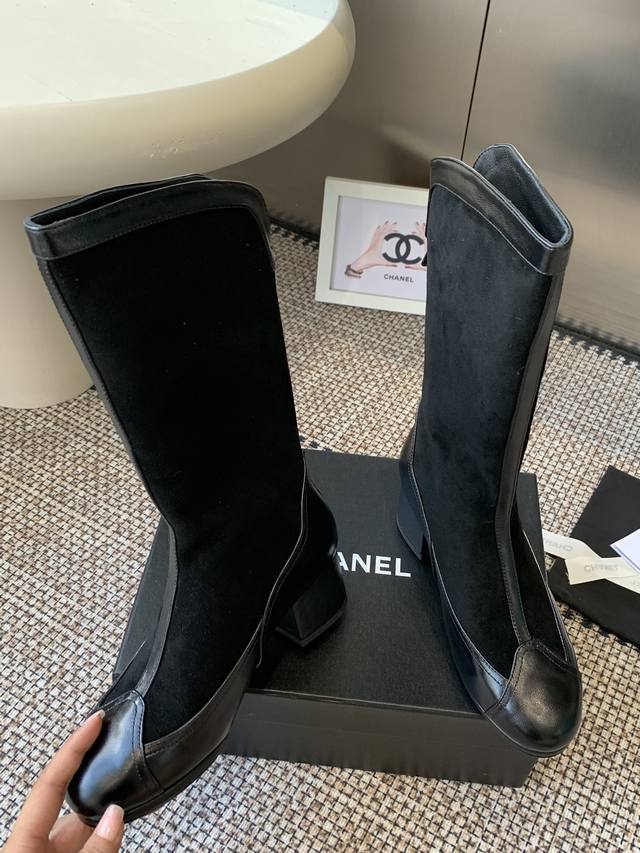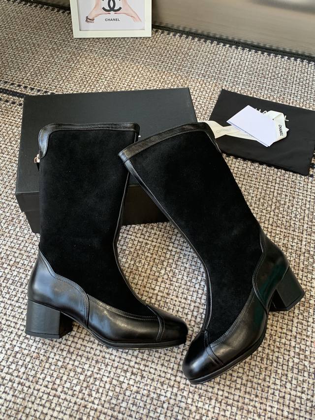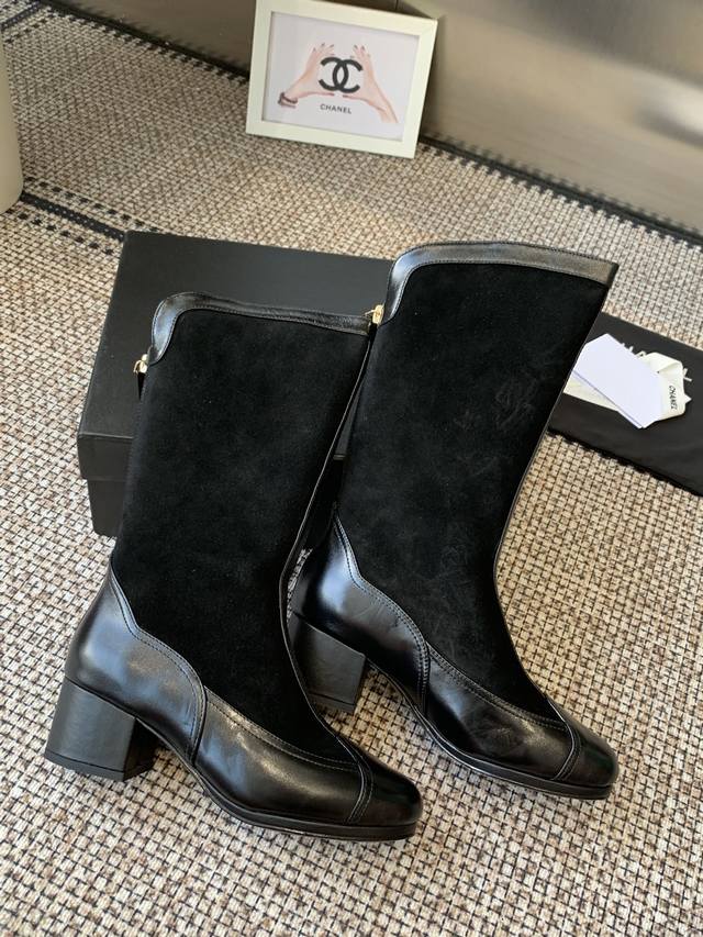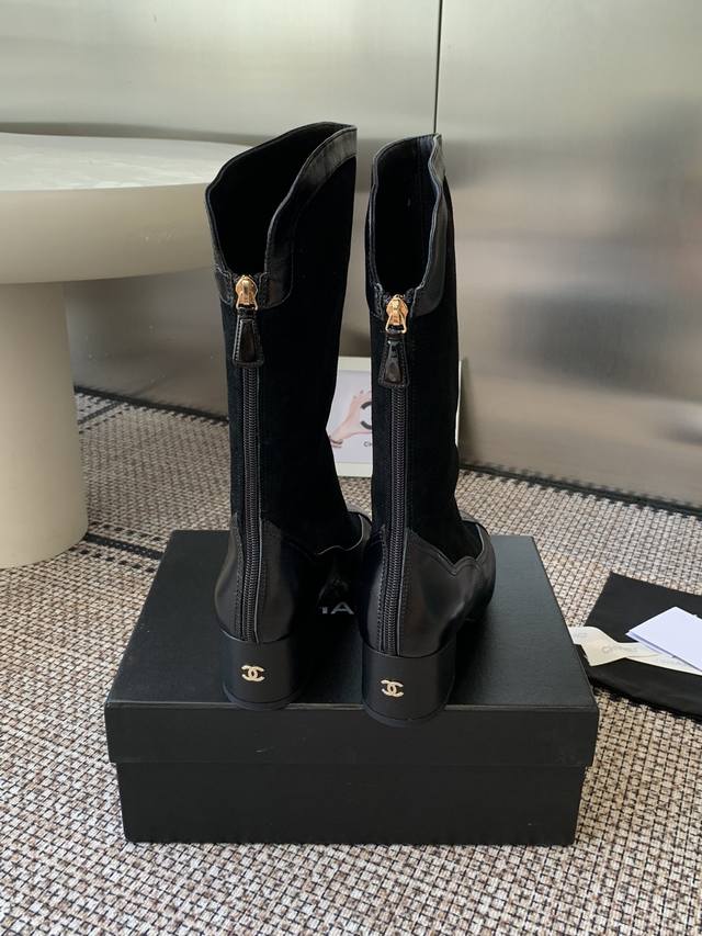 Chanel 25Ss platform knight boots, new fall/winter models, highly recommended by Xiaohongshu. A must-have for fashionistas, Chanel women love the simplicity and irresistibility. Gold hardware buckles create a unique style. Lined with water-dyed cowhide and genuine Italian leather. Sizes: 35-41. Made to order, no returns or exchanges.