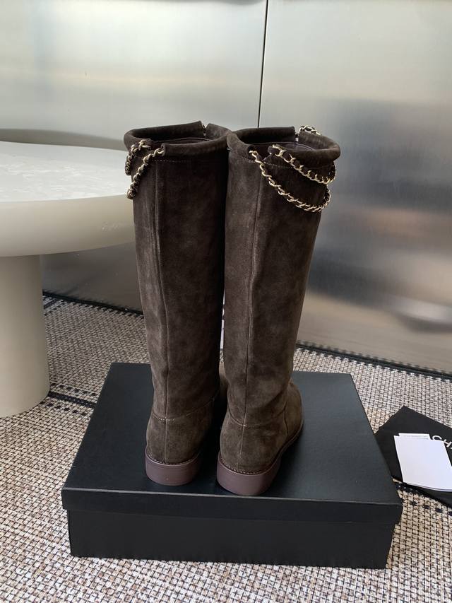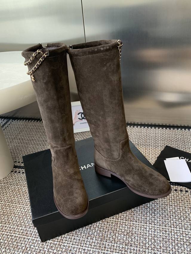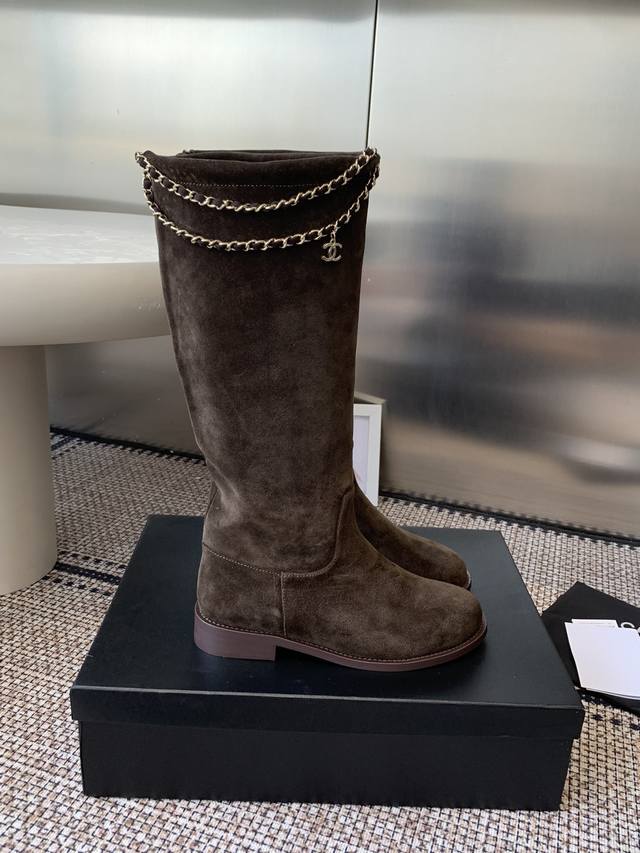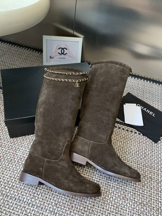 Chanel 25Ss top-of-the-line chain knight boots, new fall/winter styles, highly recommended by Xiaohongshu. A must-have for fashionistas, Chanel women love the simplicity and irresistibility. Gold hardware buckles create a unique style. Lined with water-dyed cowhide and Italian leather outsole. Sizes: 35-41. Made to order, no returns or exchanges.
