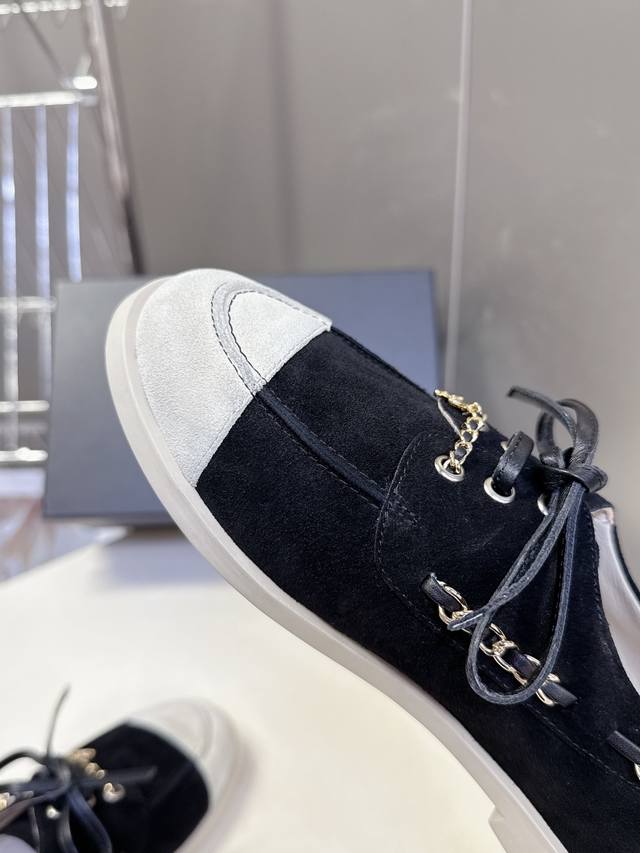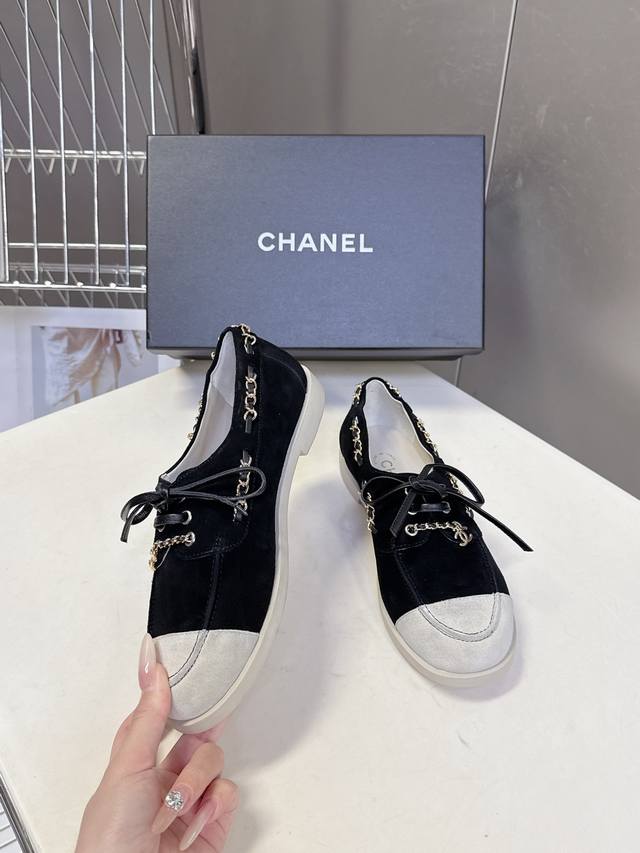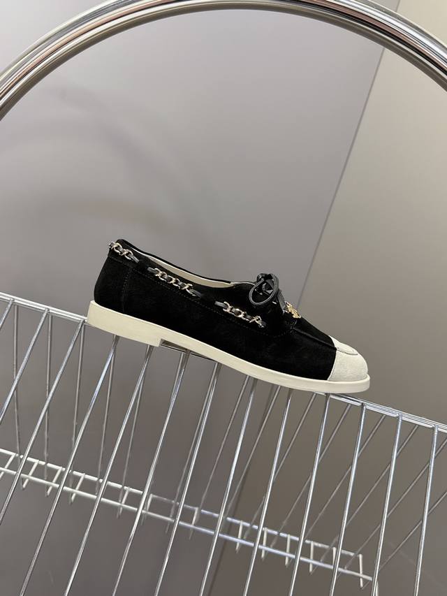 Chanel 26C Early Spring Newest Color Block Suede Loafers DDD Many celebrities and fashion bloggers are raving about these super soft and comfortable loafers. You can walk 10,000 steps a day without your feet hurting! These Chanel flat casual shoes are arguably the most stylish shoes in recent years. The clever use of leather and chain detailing creates a unique and instantly appealing look. The suede color blocking is versatile and suitable for everyday wear. Most importantly, the soft sole is incredibly comfortable and easy to wear. You'll be pleasantly surprised every time you try them on. It's a rare shoe that perfectly blends comfort, style, and versatility. The upper is made of high-gloss cowhide mixed with sheepskin, the lining is original mold, and the outsole is wear-resistant raw rubber. Sizes: 35-41, 40, 41. Custom orders are non-refundable. DDD