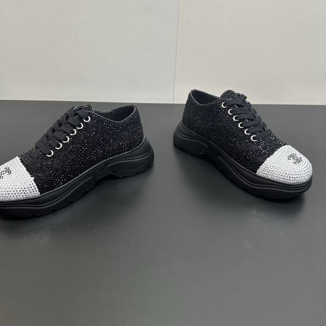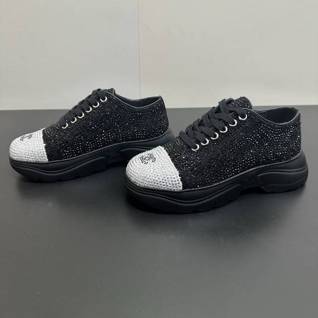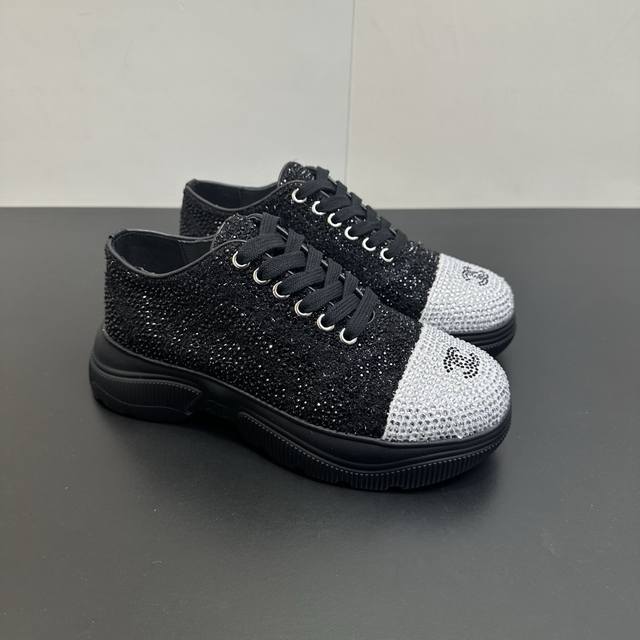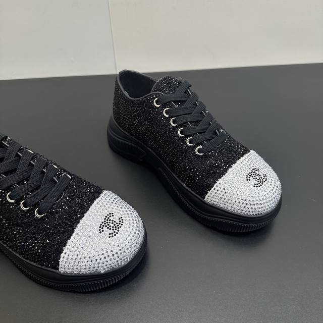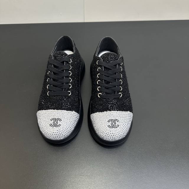 Chanel 26Ss Spring/Summer New Arrival Top-Tier Rhinestone Color-Blocked Casual Sneakers. This classic design features a versatile upper with various styles; the outsole is both fashionable and sporty; it incorporates multiple color elements for diverse and versatile combinations, making it very attractive and versatile. It's suitable for casual, fashionable, sporty, and outdoor occasions. Upper: Original imported fabric with rhinestones. Lining: Original imported breathable mesh. Outsole: Original IP foam. Size: 35-41. Sizes 40 and 41 are custom-made and non-refundable.
