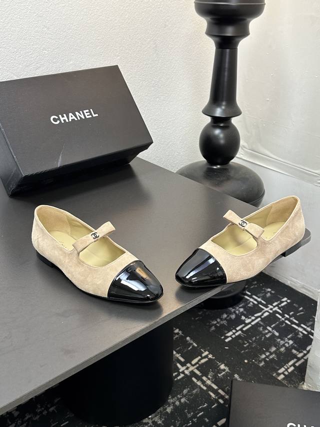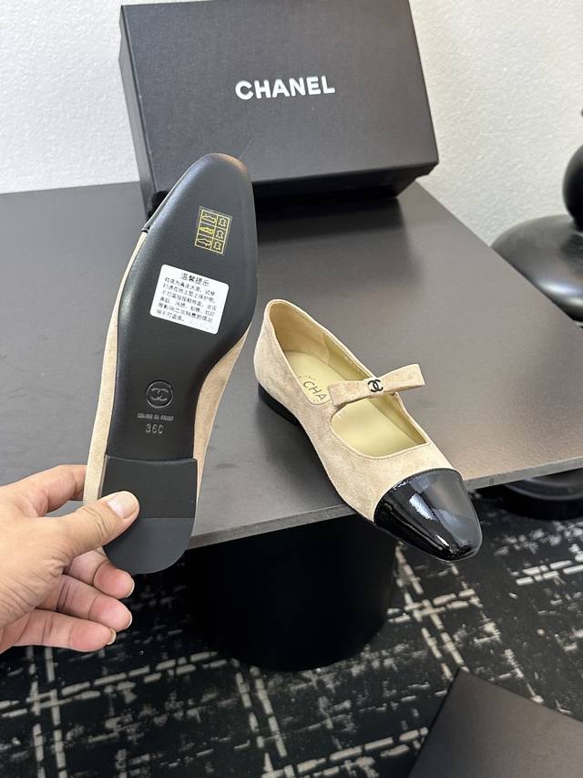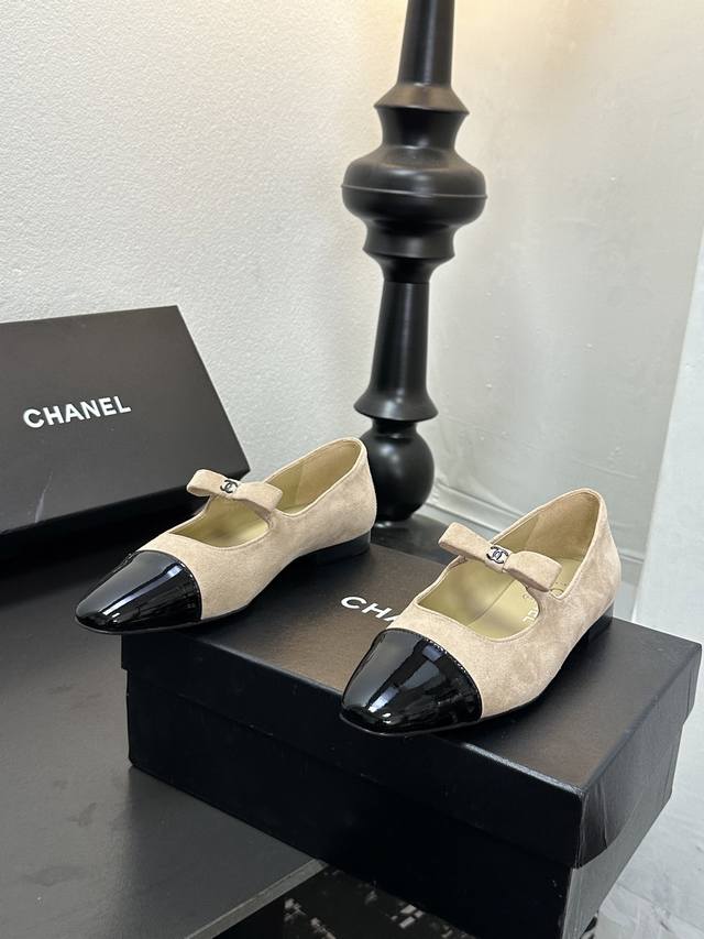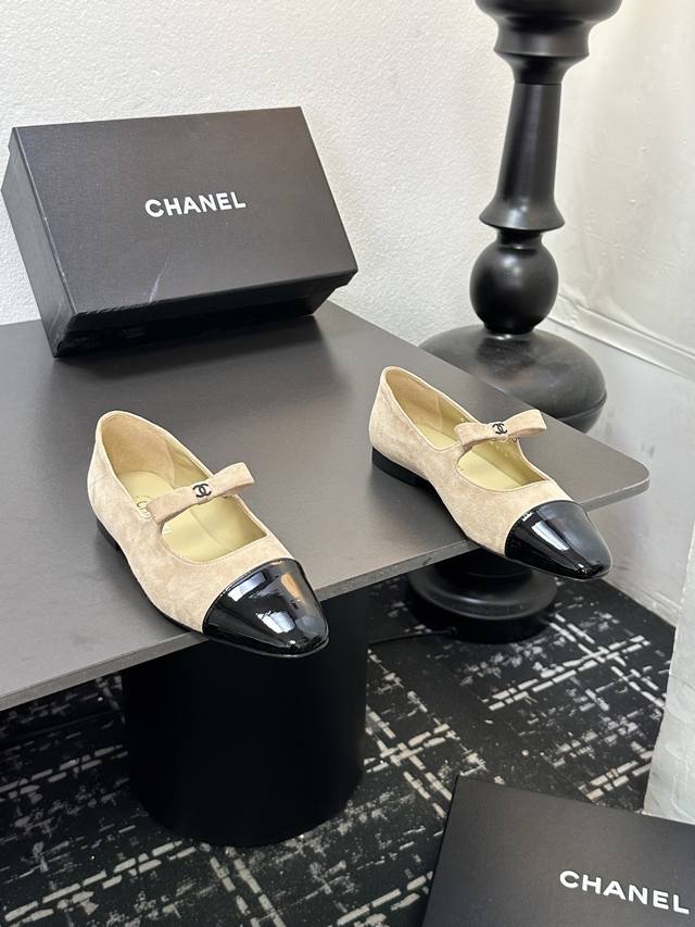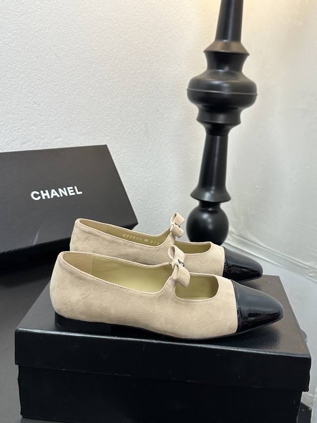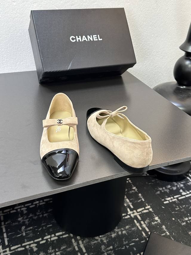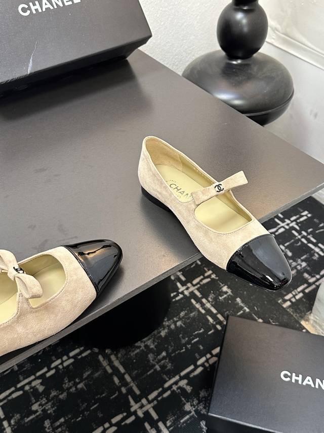 Chanel candy-colored Mary Jane shoes with bow detail, perfectly blending classic elegance with modern style. The iconic color-blocking design, with glossy patent leather contrasting with soft leather, is both retro and eye-catching. A small bow embellishment, along with the delicate double-C logo, exudes luxurious detail. The Mary Jane strap design adds a playful touch while conforming to the foot, showcasing feminine grace with every step. Material: Suede lambskin; Lining: Lambskin; Leather sole; Sizes 35-39, 40-41 (fixed).