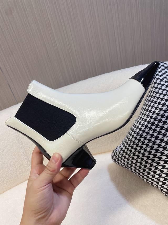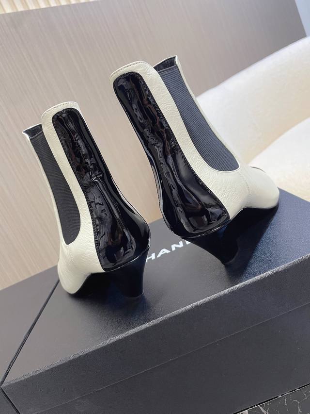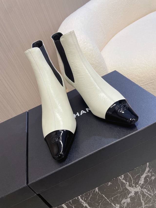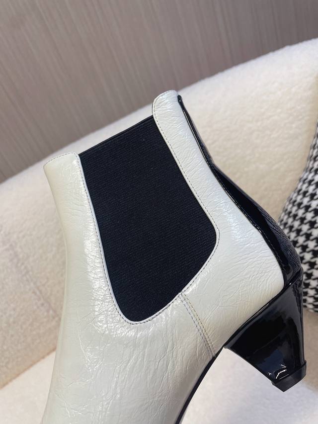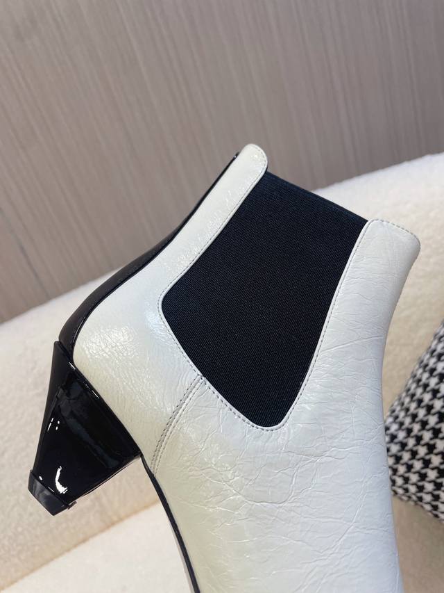 Chanel; Chanel ankle boots; short boots. Minimalist style, fashionable and stylish, super slimming on the legs and feet, successfully elongating the legs. High-end custom crackled leather upper, elastic band, genuine leather lining, 5cm chunky heel and genuine leather outsole. Sizes 34 and 41. Custom orders, no returns or exchanges.