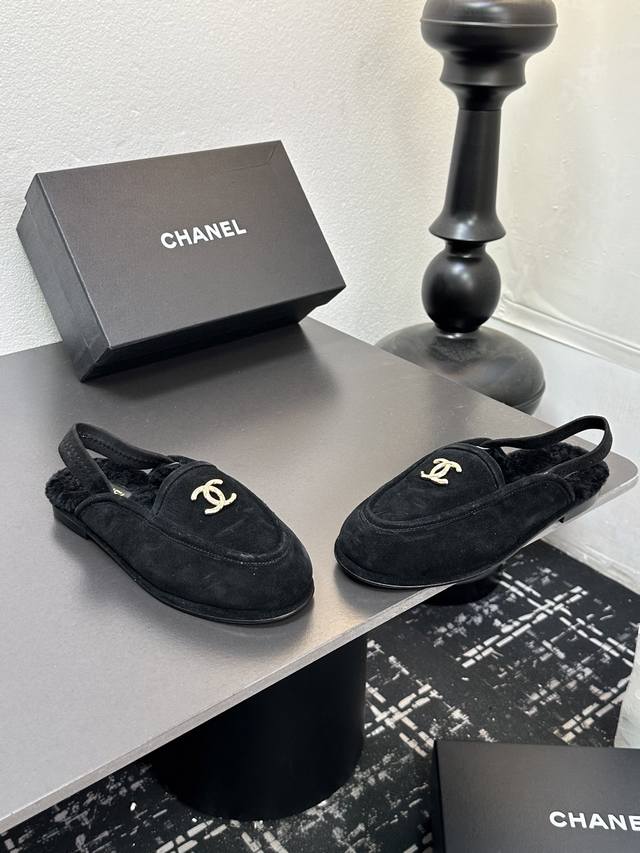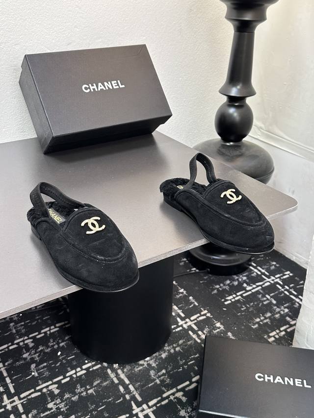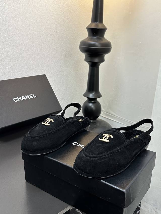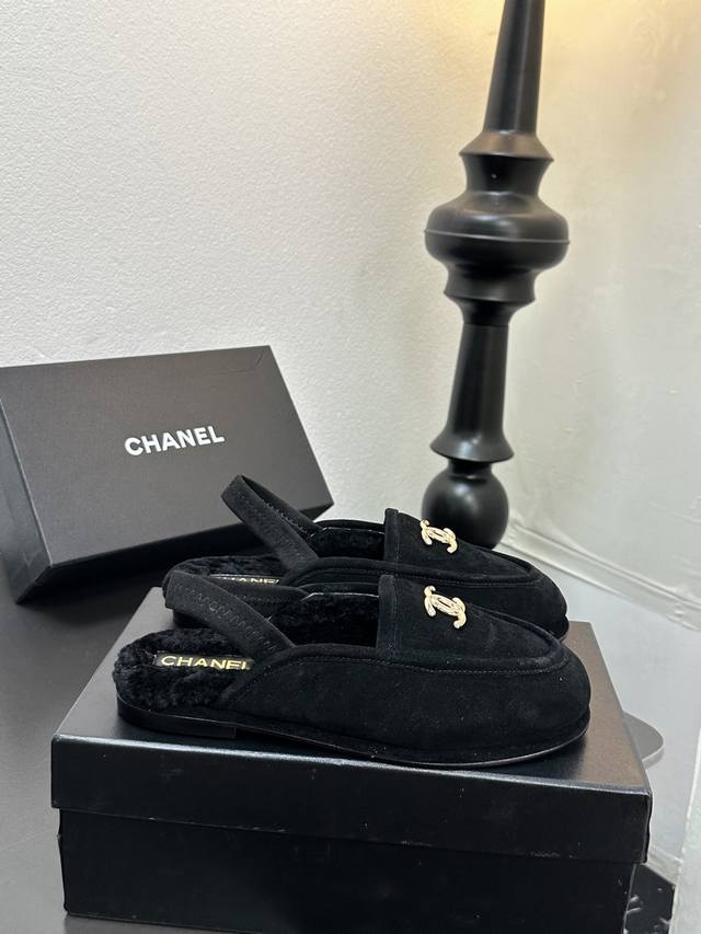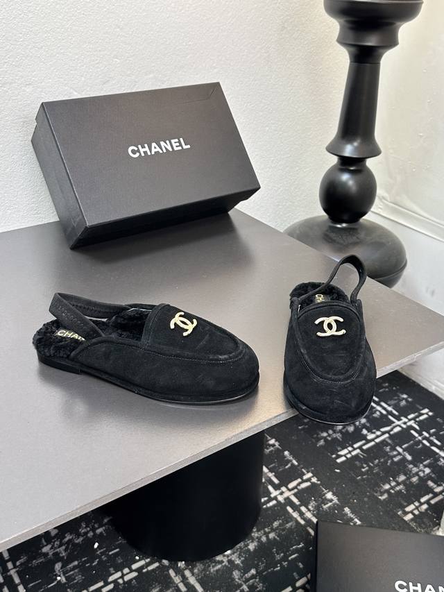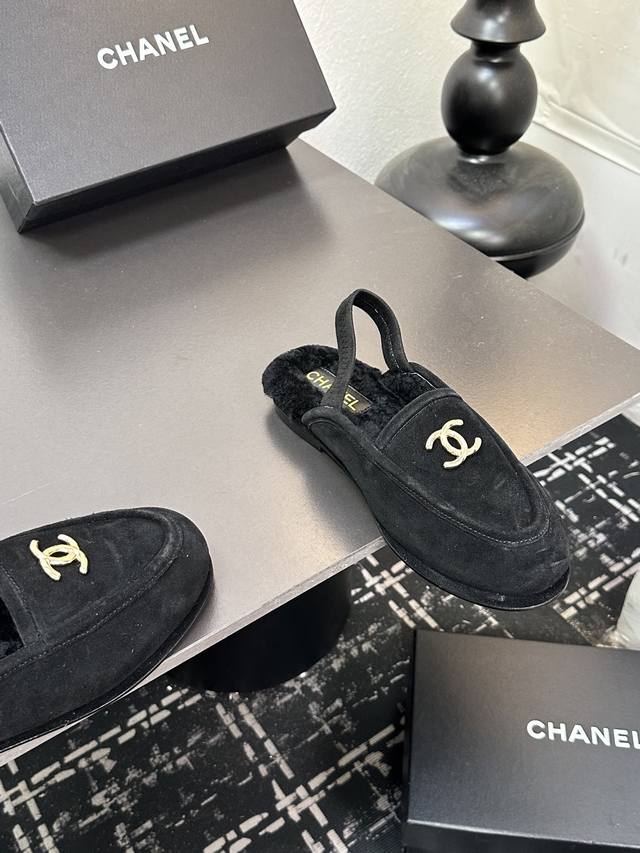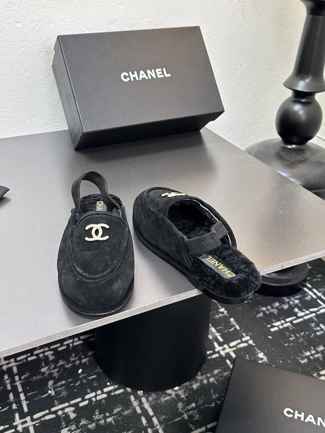 Chanel Chanel Chanel 25 autumn and winter new sheepskin lining one-step lazy slippers with elastic back strap, very comfortable