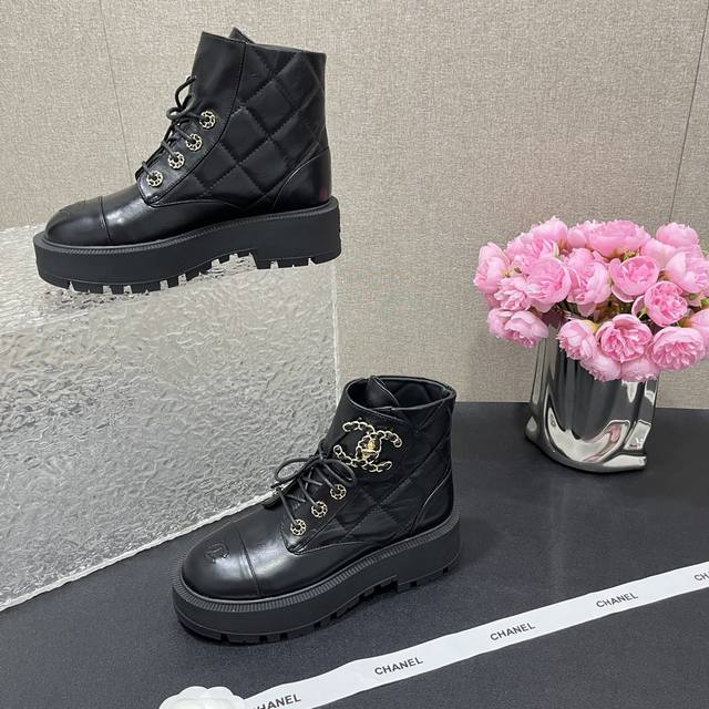 Chanel Chanel new lace-up diamond-patterned short boots Martin boots