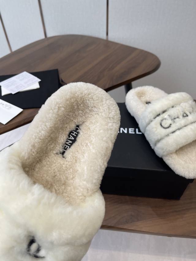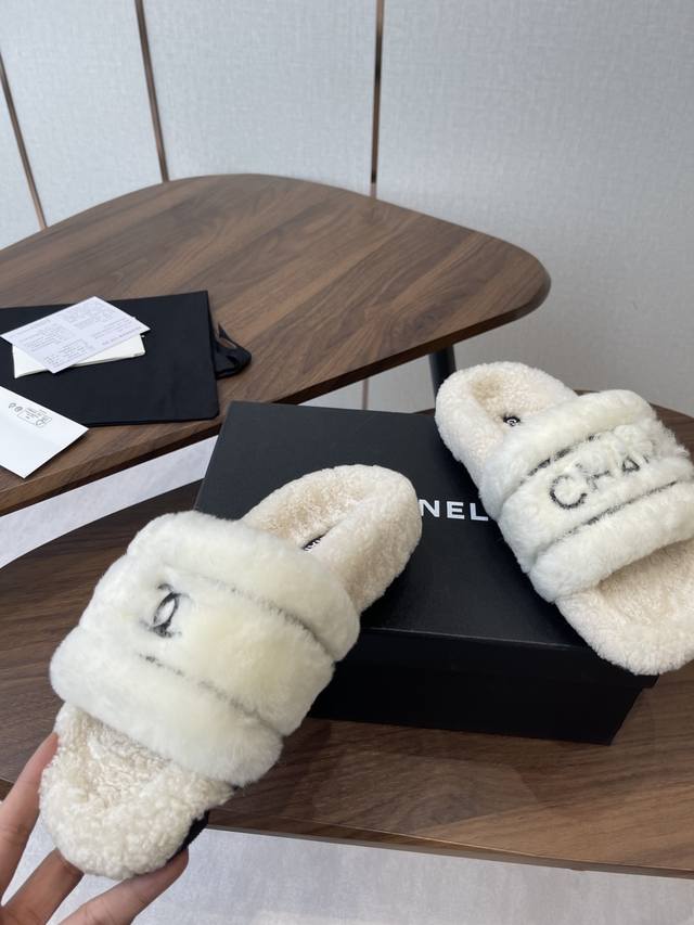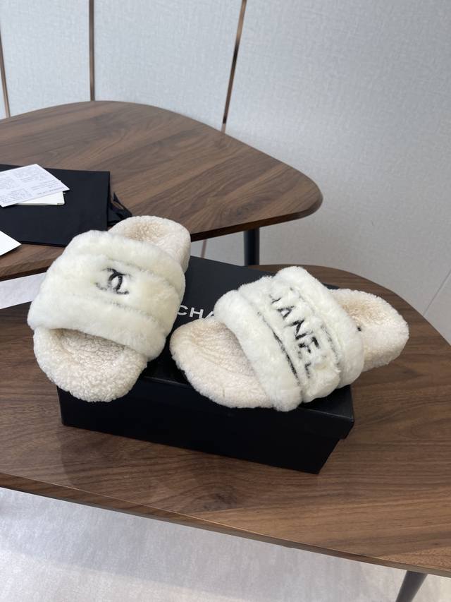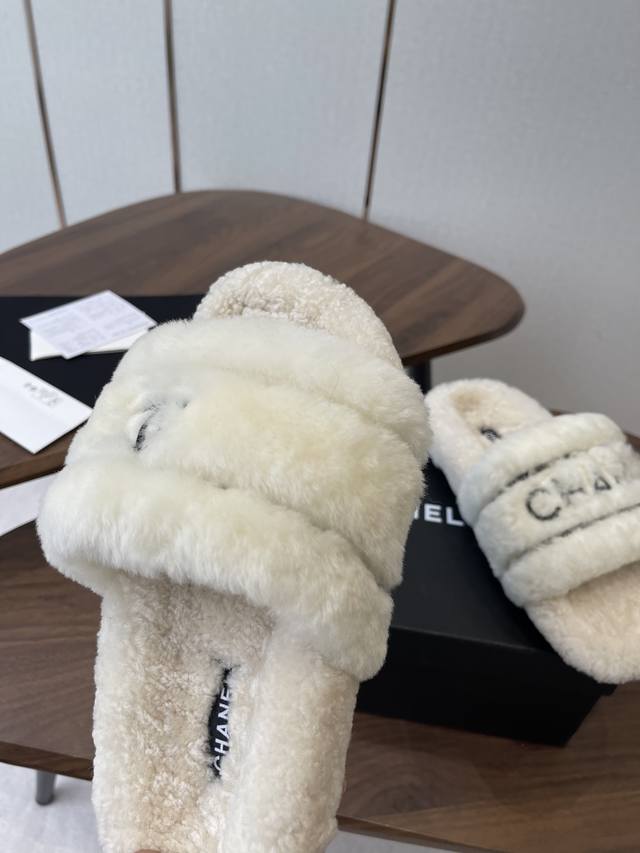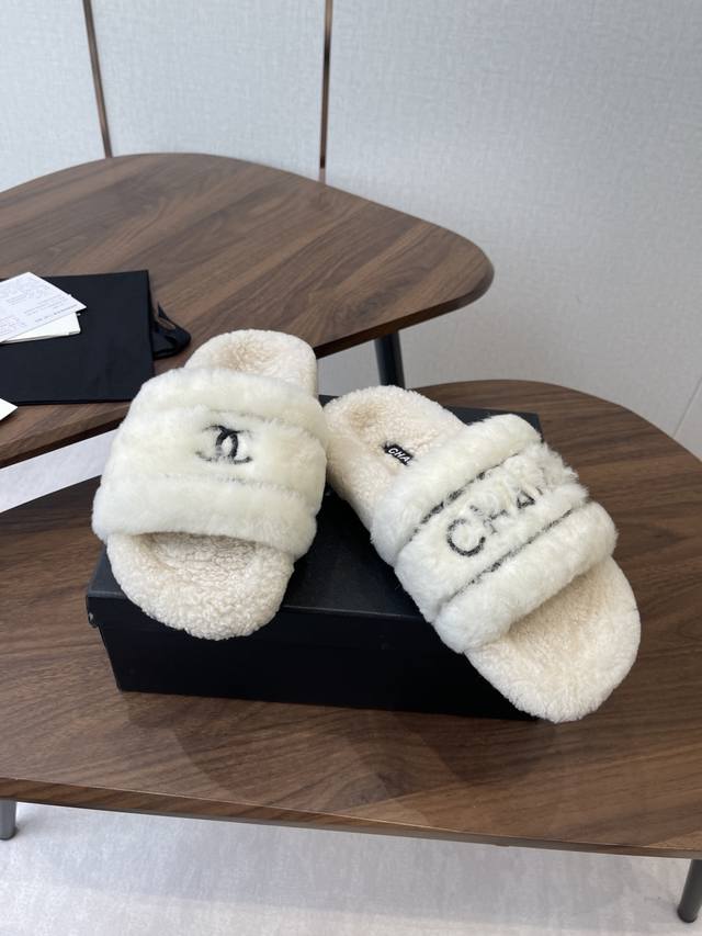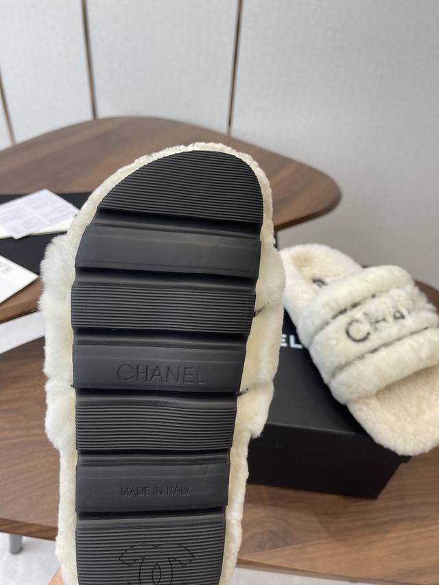 Chanel Classic All-Season Double C Furry Slippers! These furry slippers are absolutely adorable! The soft, fluffy fur is comfortable and warm. Perfect for autumn and winter; pair them with socks for a casual and relaxed look. They look great and stylish on! Made with imported wool, the fabric is delicate, soft, and silky. Rubber outsole. Sizes: #35-39, 40 (Custom sizes available).