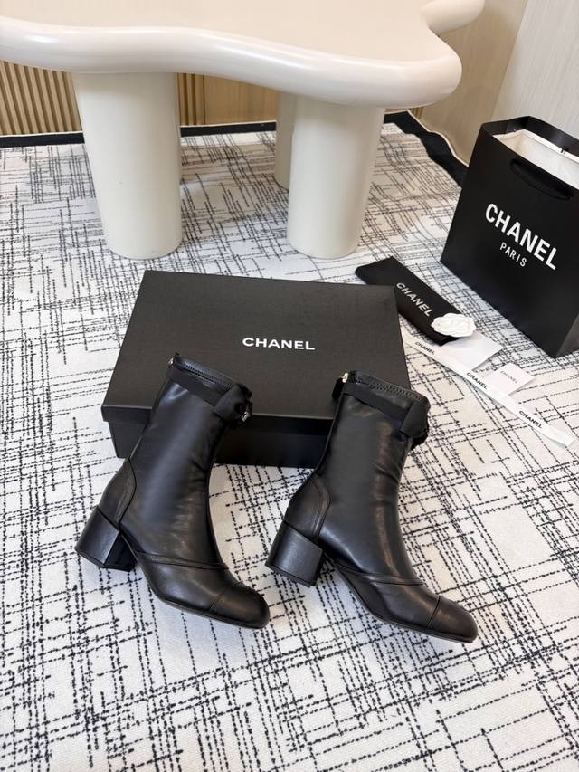 Chanel Classic Chunky Heel Back Zipper Ankle Boots. These boots cleverly blend iconic brand elements , breaking away from convention with a bold yet harmonious color-blocking design. The delicate double C logo on the heel exudes understated luxury, showcasing the brand's heritage. Whether paired with a simple dress to showcase elegance, these boots effortlessly inject a touch of high-fashion into the overall look. Made with imported sheepskin leather, including the lining and insole, and featuring an Italian imported genuine leather outsole. Sizes: 35-40, 41 (custom sizes available). Height: 330cm.