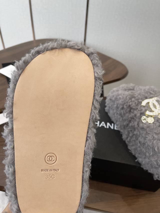 Chanel Classic Double C Furry Slippers! These furry slippers are absolutely adorable! The soft, fluffy fur is comfortable and warm. Perfect for autumn and winter; pair them with socks for a casual and relaxed look. They look great and stylish on! Made with imported teddy bear fur for a delicate, soft, and silky feel, and a rubber outsole. Sizes: #35-39. Size 40. Custom orders are non-refundable and non-exchangeable.