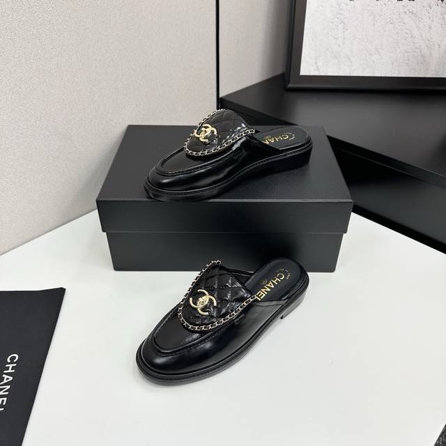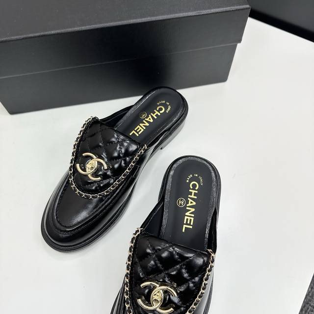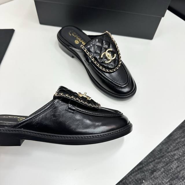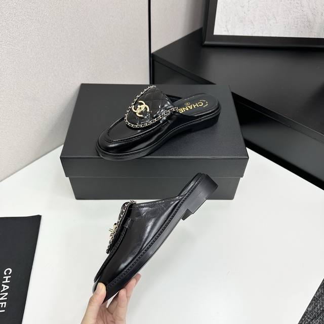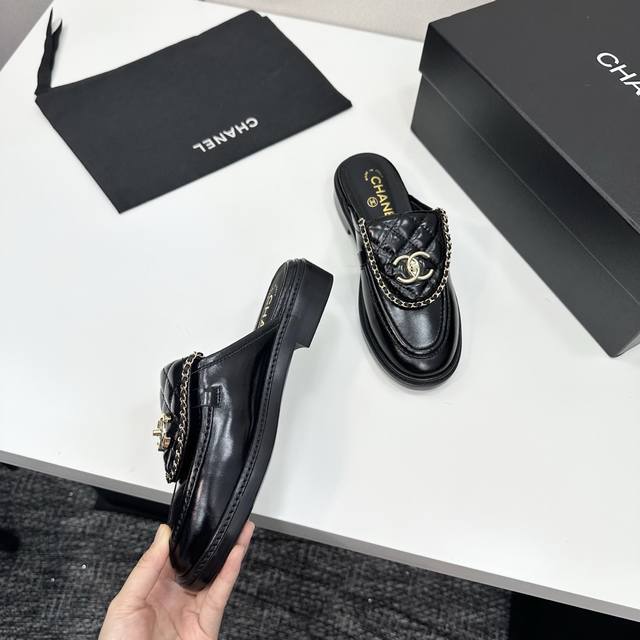 Chanel Classic Flap Chain Loafers with Double C Buckle These loafers are undoubtedly a perfect blend of elegance and modernity. The iconic double C buckle paired with the chain is the finishing touch. The rounded metal buckle adds a touch of vintage sophistication, creating a playful yet elegant preppy look. The upper is made of original custom cowhide, and the lining and insole are both made of silk sheepskin. The outsole is made of imported Italian genuine leather. Sizes: 35-39, 40, 41 (custom sizes available).