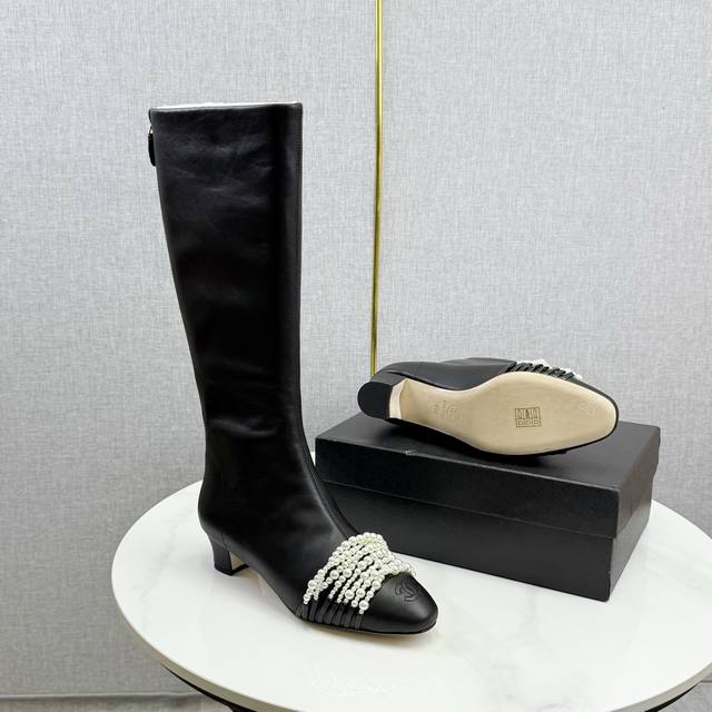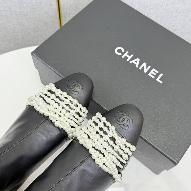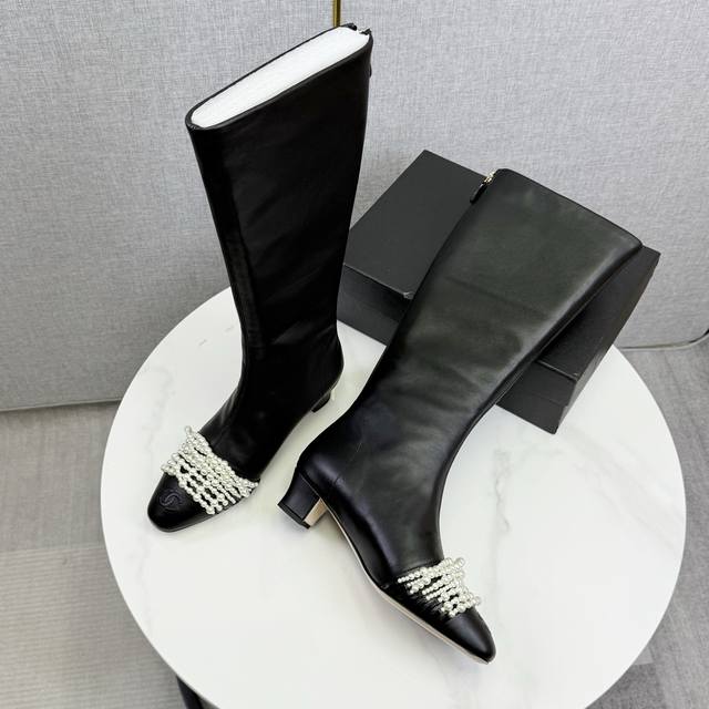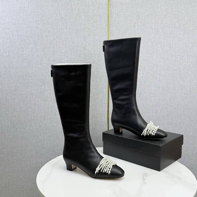 Chanel Exclusive Version Chanel Pearl Long Boots DDD Imported calfskin upper, delicate and not prone to creases DDD Water-dyed cowhide lining, the entire boot shaft is a large piece of leather extending to the top, with a large amount of leather used. Outsole, Italian genuine leather DDD Size: 35-39 Size 40 is custom-made and non-refundable DDD Price: DDD