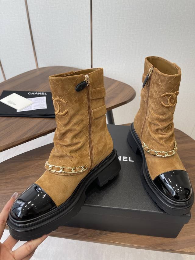 Chanel Fall/Winter 2025 Retro Style Martin Boots DDD The unique Western boot shaft design features smooth curves and irregular edges, reminiscent of free lines in the wilderness! It exudes a casual and carefree vibe, allowing every step to showcase both unbridled spirit and sophistication! DDD Whether paired with tailored suit trousers for a cool urban look DDD or with a flowing dress for a harmonious blend of strength and softness. Or even with jeans for an authentic Western feel! DDD The upper is made of imported suede, the insole is made of water-dyed cowhide, and the outsole is made to the original mold DDD Size: 35-41 40 41 Custom orders are non-refundable DDD